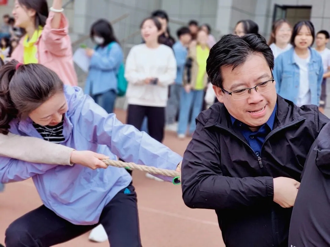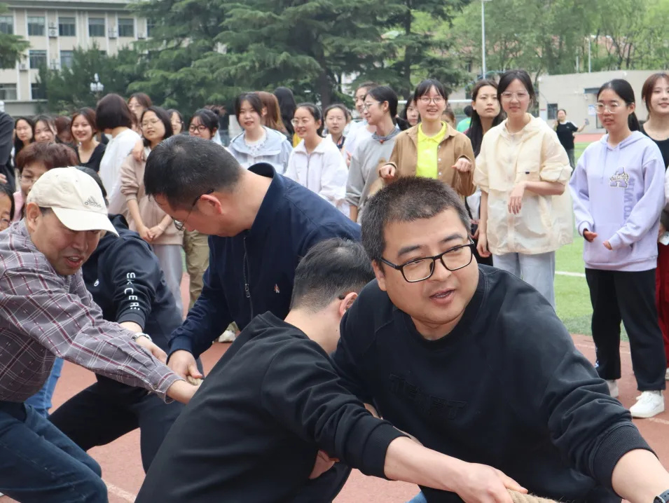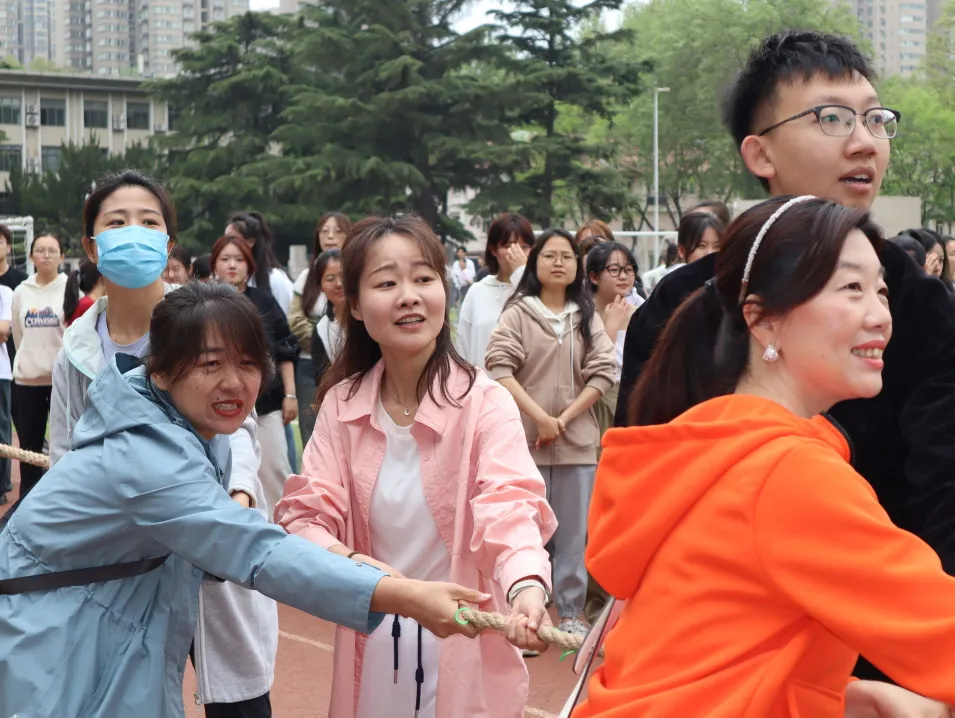从三尺讲台到运动赛场,老师和同学们举行了一场友谊拔河比赛,随后又举行了多种形式的团体合作活动目,教职工运动会在老师们的欢笑中圆满结束。