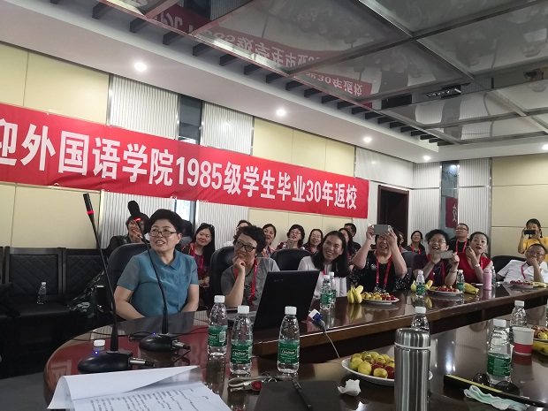 共叙师生情谊,共话事业发展。7月27日,韦德bevictor官网迎来了毕业30周年员工返校日,员工们从五湖四海赶回母校,怀揣青春记忆,共叙外语人情怀。下午3时,外语系1985级37名员工齐聚教学六楼会议室参加座谈。时任公司党委书记韦效基,时任教师侯玉海、牛亮羽、胡文新、高益荣、聂雅明,现任公司党委书记马正平、公司党委副书记鲁燕参加了座谈。