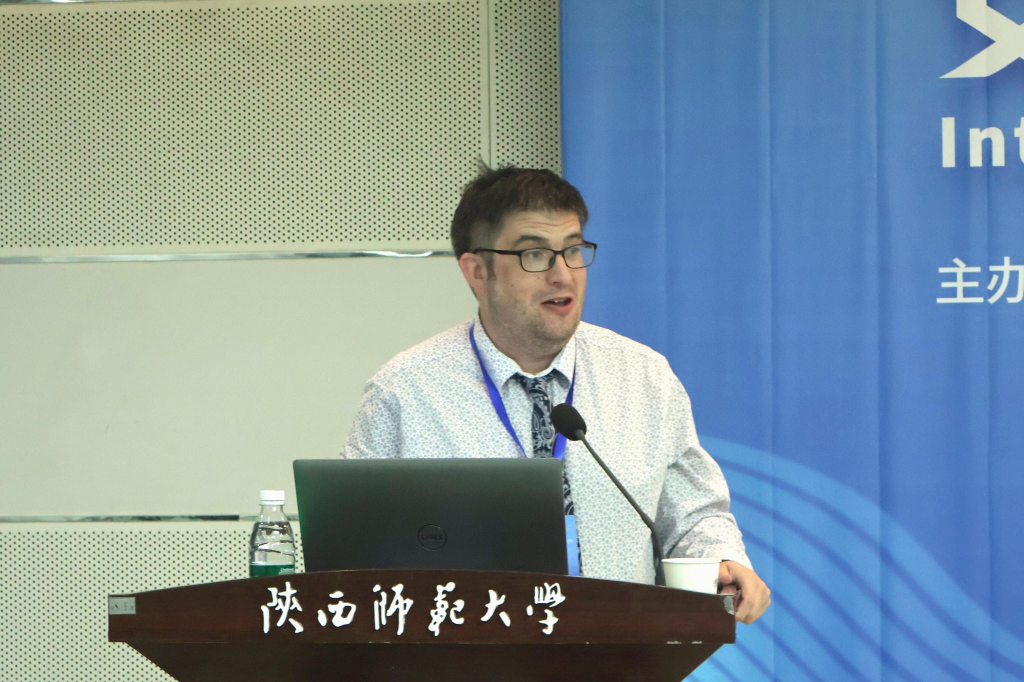 西京公司Robin Gilbank教授的报告题目为Translating Shaanxi Literture, Introducing China to the World。他分享了自己和胡宗峰教授团队翻译200多万字陕西本土文学作品的心路历程,同时也呈现了前人在翻译此类文学作品时所做的尝试。Robin Gilbank教授以陈彦的长篇小说《装台》为例,展现了译者们用翻译汇聚起来的语言力量,以及为构建融通中外的话语体系、积极推动陕西故事走向海外所做的努力。