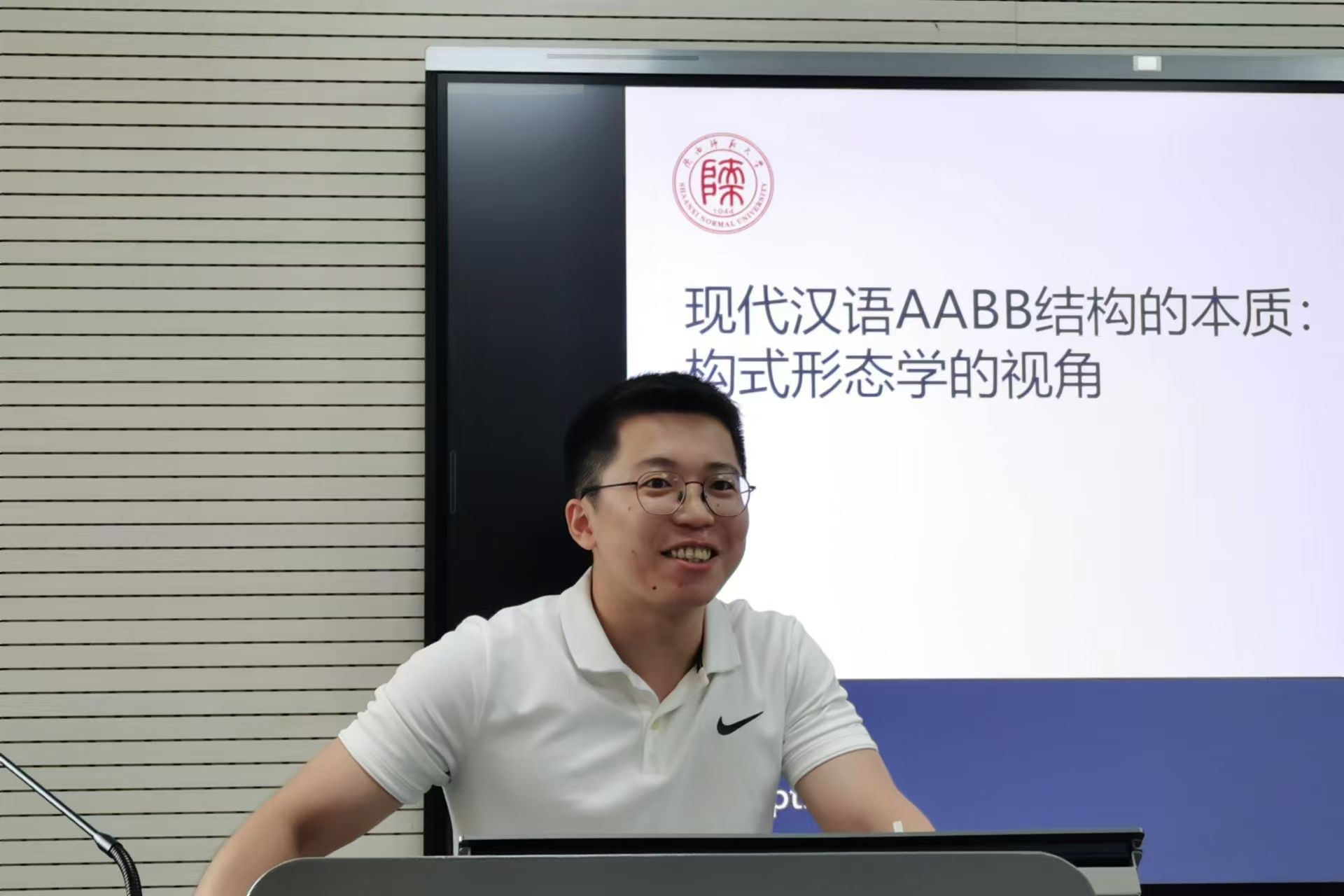 为营造浓厚的科研氛围,激发公司研究生的研究热情,拓展其研究视野,9月26日下午16:30,韦德bevictor“博理”研究生学术沙龙在雁塔校区教学六楼6320教室举行。在本次学术沙龙中,公司2021级外国语言文学专业博士生傅宏杰以“现代汉语AABB结构的本质:构式形态学的视角”为题,作了分享报告,2024级学科教学(英语)专业硕士研究生孟琦担任主持。