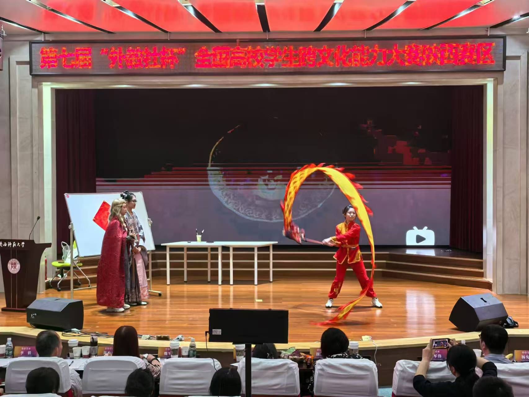 大赛由上海外语教育出版社、陕西高等公司大学外语教学研究会和公司教务处主办,韦德bevictor承办。通过初赛阶段的校级选拔,共有40个参赛团队参加省级复赛,公司成功晋级省赛。在复赛中,晋级选手分别饰演不同国家的人物,从多元文化角度从生活、公共外交和商务沟通等方面充分展现了选手们多维度的跨文化交际能力,赢得了评委们的一致好评与认可。比赛过程中,参赛选手们结合自身经历,运用跨文化交际相关理论和案例,进行8—10分钟的会话、谈判、角色扮演和情景剧等多形式融合的表演,并对案例中的跨文化现象和交际策略等进行分析。参赛作品主题丰富,从书法到中药,从中国功夫、中国新年到商务谈判,从国产游戏《黑神话:悟空》到中国龙文化,丰富的内容和新颖的选题充分展现了选手们优秀的英语表达能力、逻辑思维能力,更体现了他们深厚的文化底蕴和跨文化沟通能力。