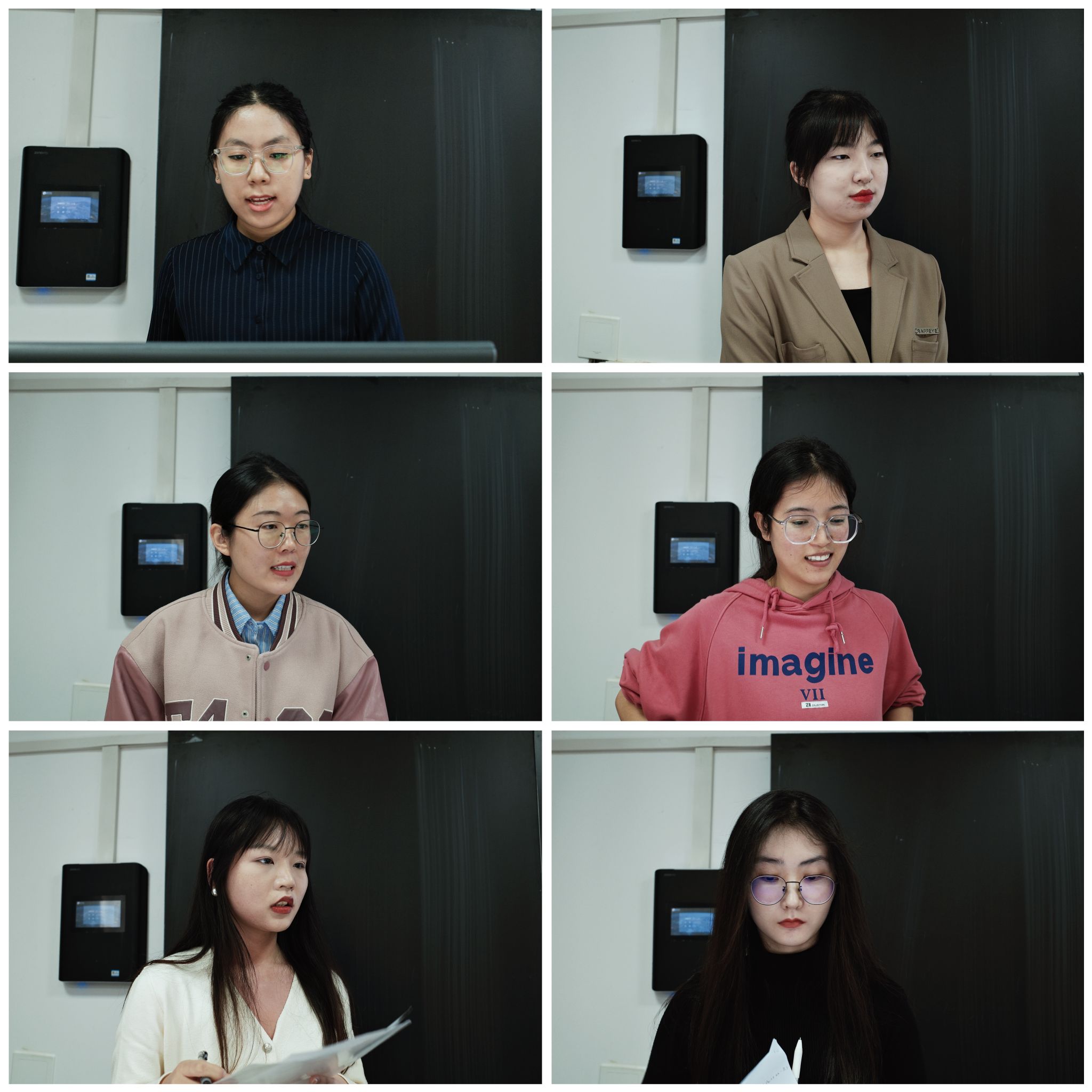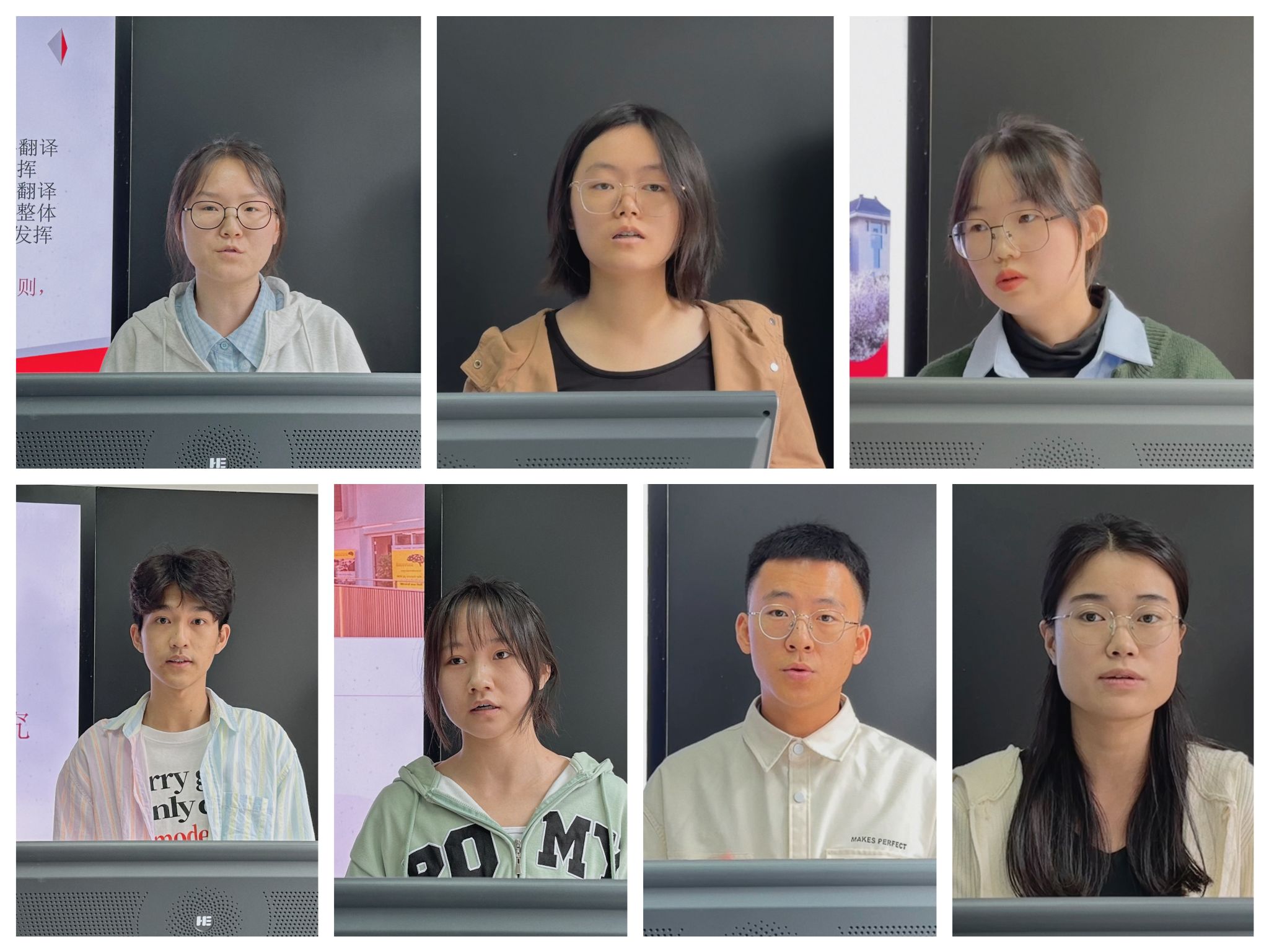 硕士生王艺超、程睿淇、张雨、周鹏羽、庞帅及韦誉君、李静萱、蔡雨暄、郭欣、郭雯雯、谢俊杰分别以“基于‘教一学一评’一体化的高中英语课堂教学评价量表中的问题与改进策略”“双减政策背景下初中英语作业设计研究”“内容依托式教学法对高中生批判性思维倾向的影响研究”“字幕类型对高中生附带词汇习得的影响研究”“职前英语教师反思能力发展研究”“实习期间职前英语教师身份认同变化的研究”“基于情境认知理论的高中英语深度阅读教学研究”“初中英语教师写作评价素养的个案研究”“PACE教学模式在初中英语语法教学中的应用研究”“全身反应法在小员工英语词汇教学中的应用研究”为题,围绕英语教学与评价、作业设计、教学法等多个方面,进行了深入的分享与交流。两位评委老师全程认真聆听、仔细记录,对每位同学的发言进行了细致的点评与指导。