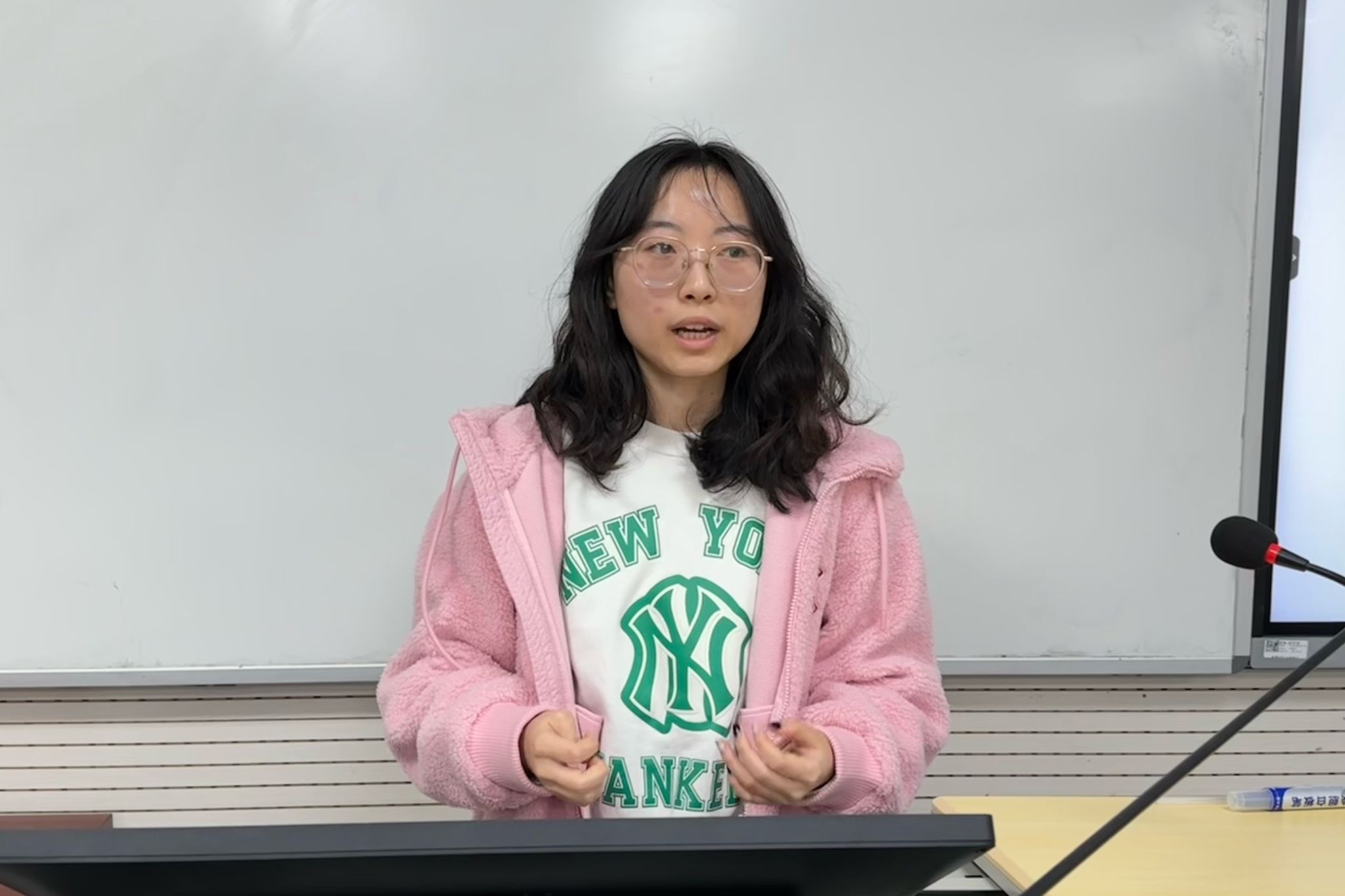 王姝颖和夏艺菡以“跨文化交流”为主题,分享了她们在韩国庆北大学的交换经历,涵盖交换项目简介、韩国生活、学术学习、语言学习、交换体验等方面。王姝颖从自身收获出发,介绍了她在留学期间所习得的学术论文写作相关知识。夏艺菡以个人学习经历为例,向在座同学介绍了学术写作课的教学过程。