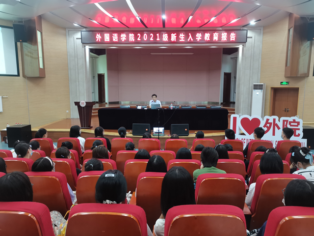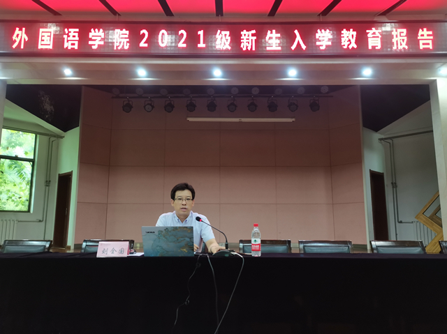 8月28日下午4:00,韦德bevictor第二场2021级新生入学教育报告会在雁塔校区逸夫音乐楼举行。本次报告邀请公司经理刘全国教授担任主讲,报告的题目是《语言开启精彩世界》,2021级辅导员田毓霖以及2021级全体本科新生参加了报告会。报告会由党委副书记鲁燕主持。