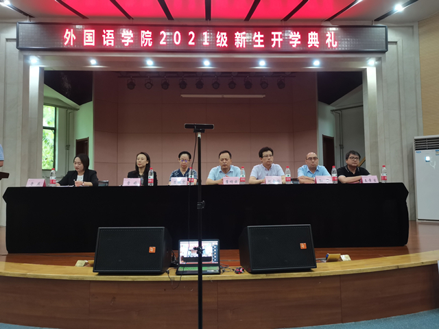 8月28日下午15:00,2021级本科生开学典礼在逸夫音乐楼二层多功能厅举行。公司经理刘全国,党委书记董增云,副经理孙坚、吕敏宏、曹婷、王幸生,党委副书记鲁燕,公共外语教学与研究部主任马珂,俄语系主任孟霞,翻译系主任操林英,法语系主任王燕红,英语系副主任刘庆松、丁礼明,翻译系副主任杨冬敏,教授代表李艳,办公室主任陈斐,语言语音教学中心主任邢俊升,团委书记李丹,本科生教学秘书高红英,2020级兼职辅导员刘爽,2021级辅导员田毓霖以及全体2021级本科新生通过线下、线上的方式参加了本次典礼。典礼由鲁燕副书记主持。
