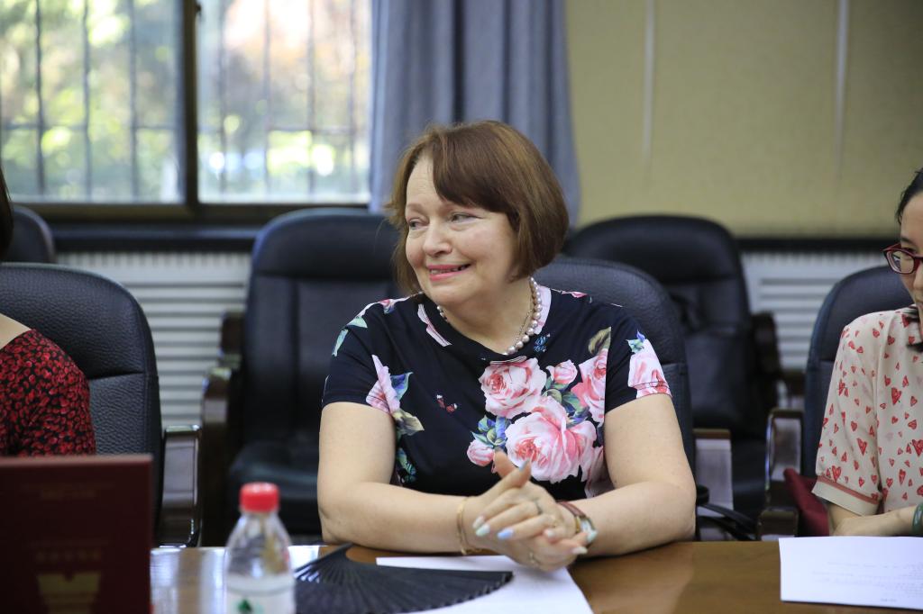 座谈会伊始,俄语系主任孟霞对“西安友谊奖”进行了简单的介绍;随后,娜塔莎发表的获奖感言,句句真挚,饱含了对中国、对中国教育事业的热爱之情,参会者们都大为感动。接下来,俄语系副主任王翠作为教师代表、优秀员工本科生代表田欣雅、研究生代表张英杰,博士生代表李莹莹等人作为员工代表,分别讲述了自己眼中的娜塔莎以及她对俄语系师生的积极影响。发言中,大家频频提到她的敬业精神、她的教育情怀、她的。随后,董书记对娜塔莎老师的获奖情况表达了真诚的祝贺,也对其为中俄友谊做出的巨大努力表达了由衷的感谢。同时,他要求全体师生能够担负起建设伟大祖国的使命,为中华民族的伟大复兴贡献力量;他希望全体外籍教师都能投身中国教育事业,为中外交流做出积极贡献;对于俄语系未来的发展,他也提出了建议。