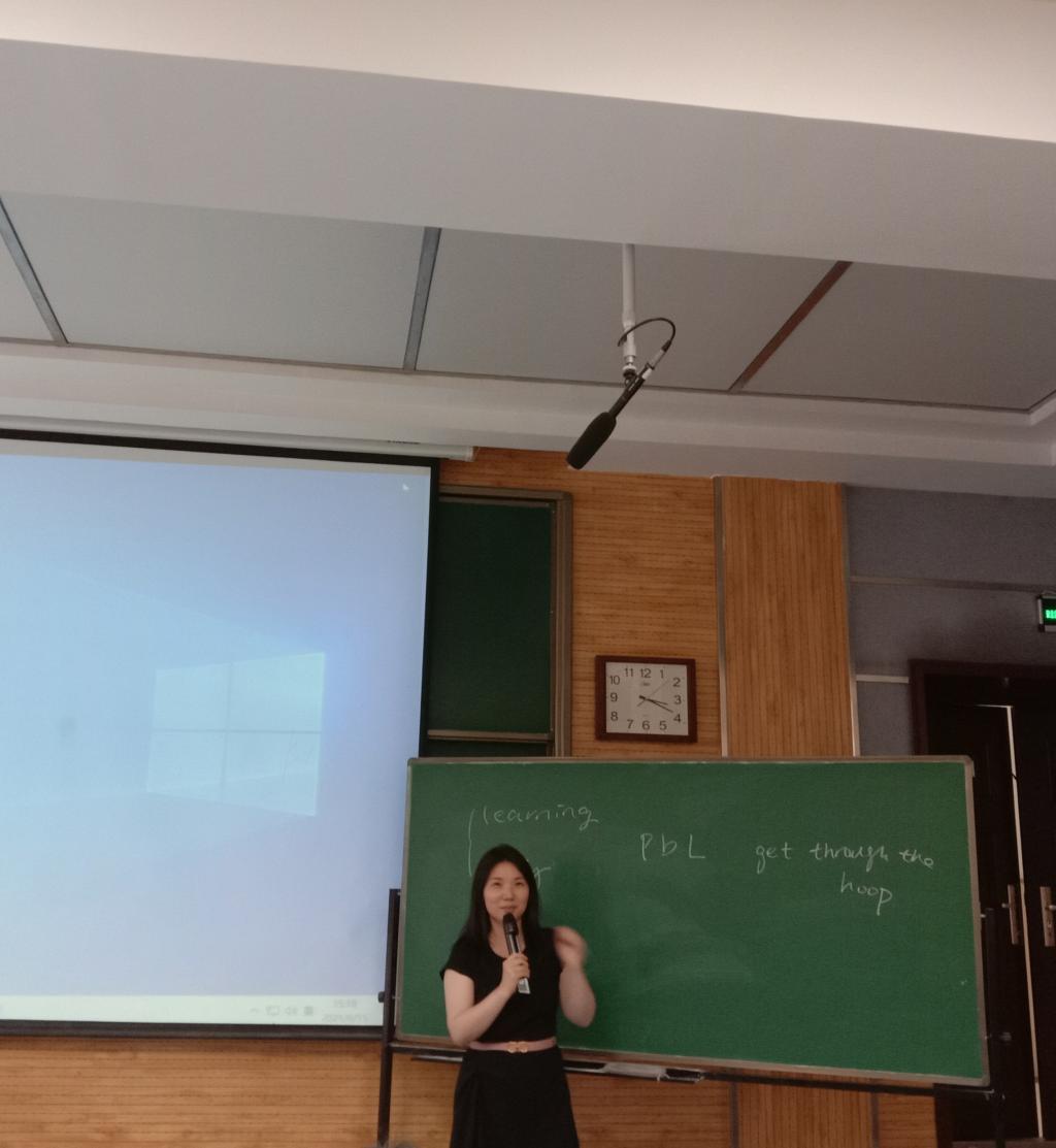 随后,陈蕾老师分五个方面详细地讲解社会文化理论的定义,分别是学习动机在认知视角和社会文化视角下的区别;在社会文化视角下对输入、输出的理解;第一语言习得;第二语言习得以及“习得”与“学习”的区别。接着,陈蕾老师带领员工观看有关社会文化视角开展project based learning (以下简称PBL)的视频,并对PBL课堂特点进行分析。最后,员工在老师的引导下进行了科学研究案例分析,并讨论了中国老员工的批判性思维、动态评估和多元文化教育等话题。陈蕾老师与在场员工频频互动,课堂氛围活跃,赢得大家阵阵掌声。