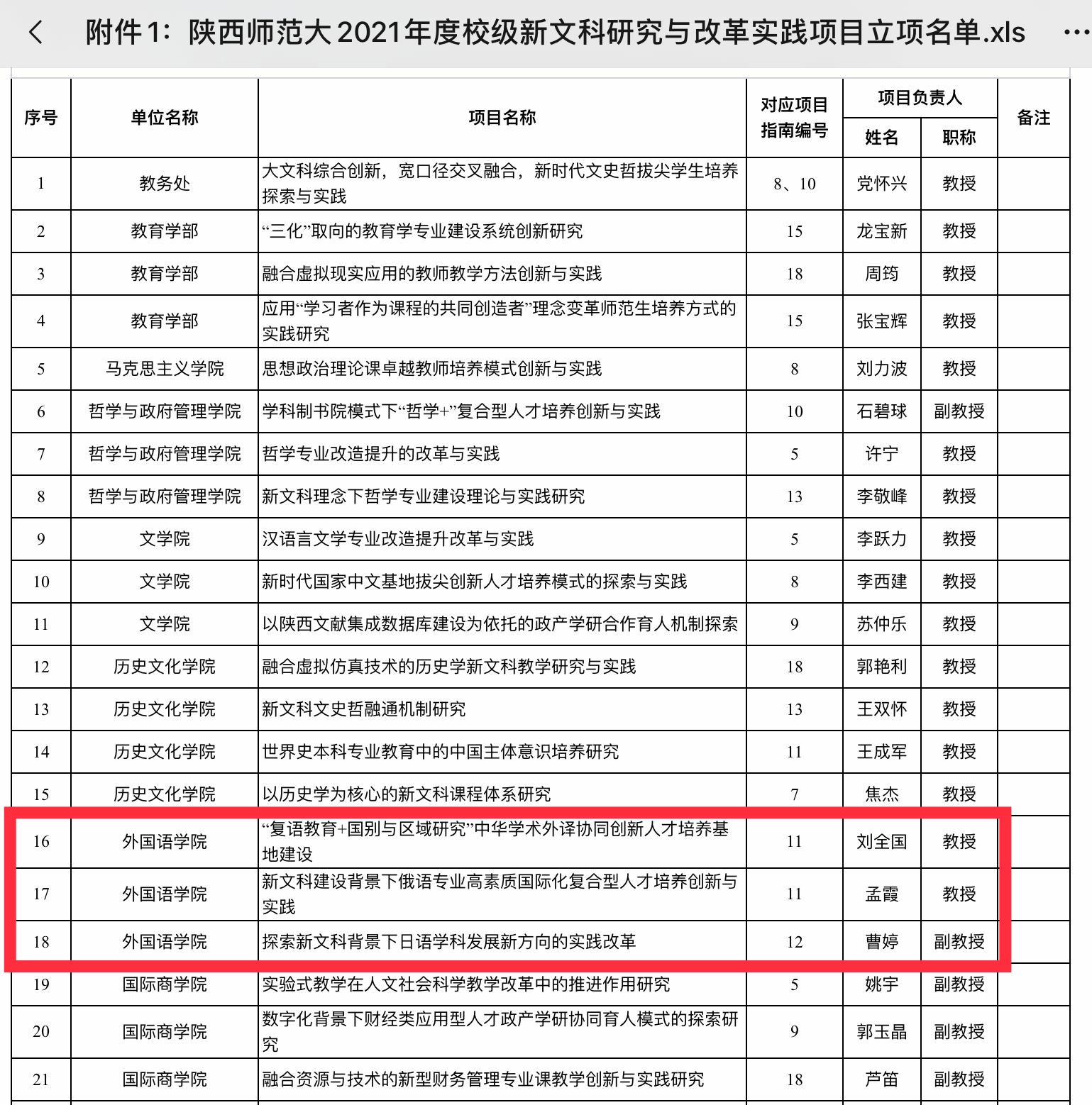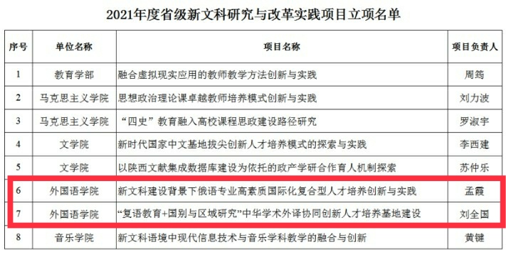 同时,公司刘全国副经理、孟霞教授主持的项目,被公司推荐申报陕西省教育厅并成功获批陕西省新文科研究与实践项目立项。(立项名单见下图)