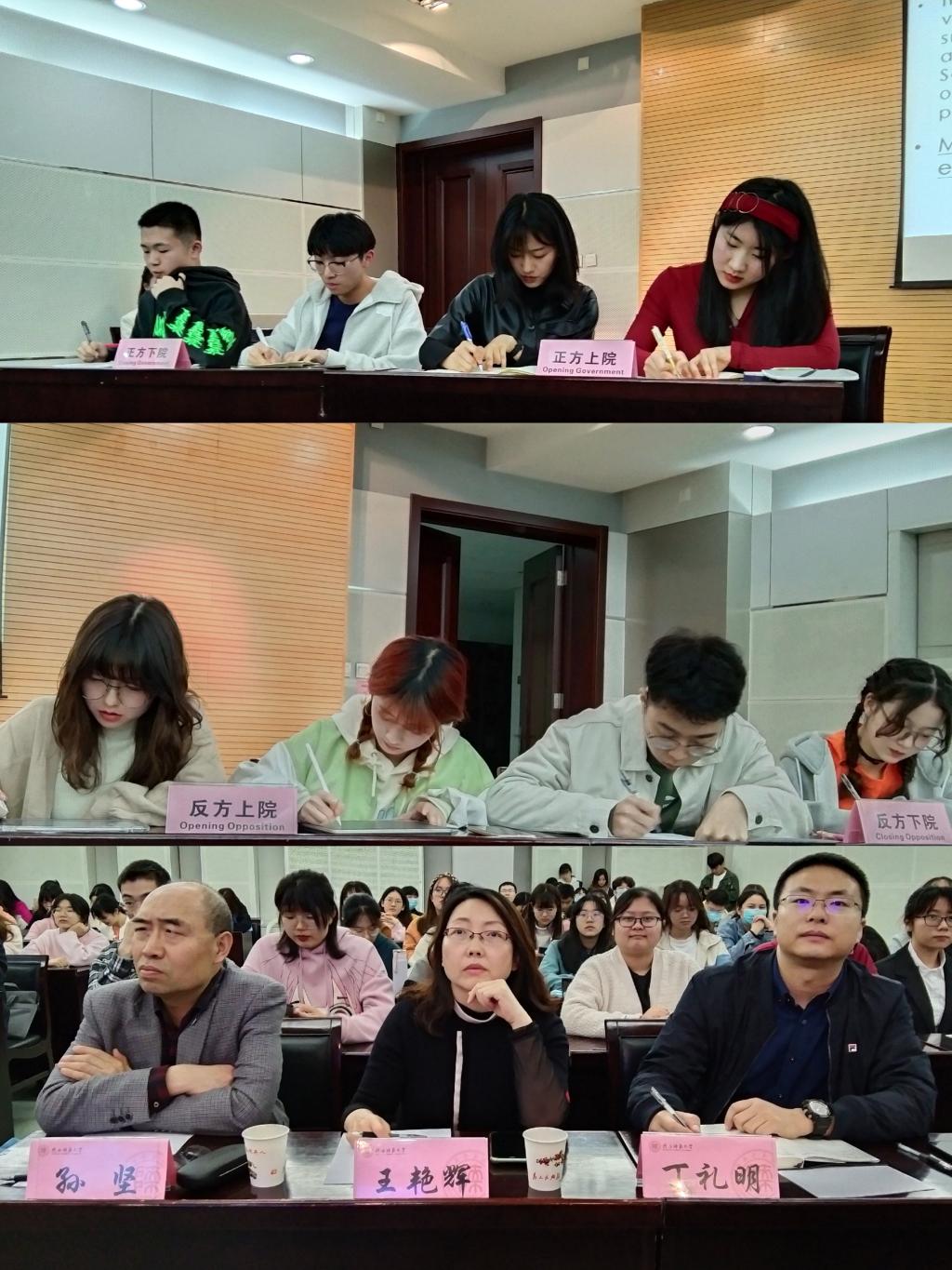3月26日晚,由校团委主办、韦德bevictor承办的第二十三届“外研社·国才杯”全国老员工英语辩论赛韦德bevictor官网校园选拔赛决赛在雁塔校区崇鋈楼闻道堂举行。韦德bevictor副经理孙坚,英语系副主任丁礼明,公共外语教学部教师、英语辩论队指导老师王艳辉应邀担任本次比赛的评委。韦德bevictor团委书记高芳卉、2017级辅导员李丹及来自全校各公司的英语辩论爱好者共同观看了此次比赛。