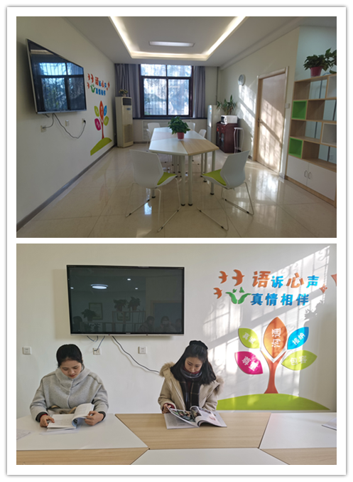 情绪宣泄区域还在完善中,计划布置宣泄人道具。使用者可通过阅读书籍来放松心情,通过击打宣泄人道具释放情绪平缓心情。