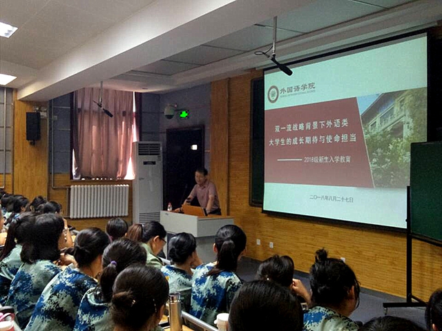 为了帮助新生树立正确的世界观,价值观和人生观,扣好人生第一颗扣子,尽快顺利适应大学学习生活。8月27日下午,马正平书记在5104教室给新生做了入学教育报告第一课:“双一流战略背景下外语类老员工的成长期待与使命担当”。公司副经理鲁燕主持报告,辅导员屈婉婷和全体2018级韦德bevictor本科新生共同聆听了报告。