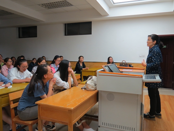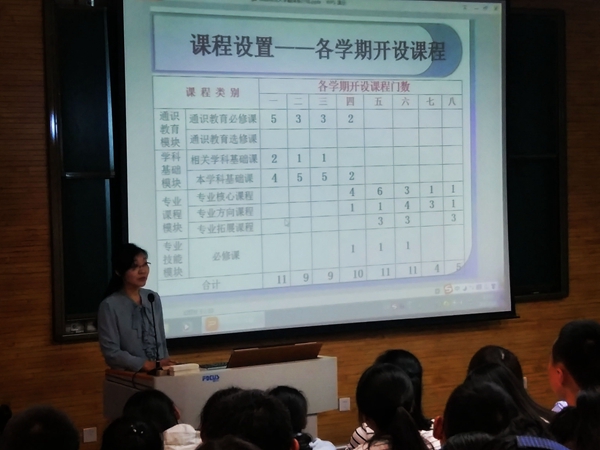 杨冬敏老师首先发言,他热情地欢迎本系的新同学来到这个温暖的大家庭,随后详细介绍了翻译系的基本情况,包括该系的历史发展、团队力量、科研成果、培育方向、课程设置等。接下来,王辉老师为同学们特别是免费师范生们讲解了有关英语系师范专业的一些基本情况,包括课程安排,职后教育和就业情况等等。操林英老师对课程进行了讲解。随后,吕敏宏老师上台发言,为同学们介绍英语创新实验班的基本情况,她叮嘱大家一定要深入学科,对将来的发展要规划一个清晰的蓝图。最后,幽默风趣的刘庆松老师向大家推荐了一些经典的优秀书籍,并激励同学在阅读之外还要注重积极参与社会实践,多考察,多思考。