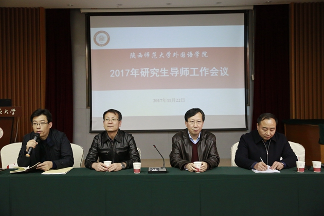 为促进韦德bevictor研究生人才培养质量,助力公司团队建设和人才培养模式改革,11月22日下午,韦德bevictor在雁塔校区学术活动中心召开2017年度研究生工作会议,本次会议的主题是“高标准、严要求、新思路”。韦德bevictor官网研究生院副经理王明道、公司经理王启龙、外国语公司党委书记马正平、副经理刘全国、贺俊杰及全体研究生导师参加了会议。本次会议由韦德bevictor副经理刘全国主持。