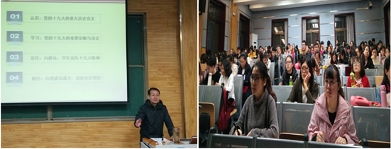 闫文浩为发展对象解读了《关于新形势下党内政治生活的若干准则》和《中国共产党党内监督条例》,让同学们对中国共产党有了更深一步的认识;马正平作了“老员工如何学习、践行党的十九大精神”主题报告,他从认识党的十九大重大历史意义、学习党的十九大的重要论断与决定、宣传与践行党的十九大精神等四个层面进行了系统深入地讲解;孙伟从中国共产党的组织原则和纪律是什么、为什么、怎么做等方面深入细致地阐释了“中国共产党的组织原则和纪律”;罗永辉分别从党的十五大、十六大、十八大和十九大对党章的修改问题着手阐释了“党的指导思想及其与时俱进的理论品质”;鲁镇从马克思、恩格斯、列宁关于共产党宗旨的理论与实践,中国传统文化中的“民本”思想,十一届三中全会后全心全意为人民服务思想的创新发展及新时期全心全意为人民服务思想的升华四个方面阐释了“中国共产党‘全心全意为人民服务’宗旨的理论渊源及其演进轨迹”。