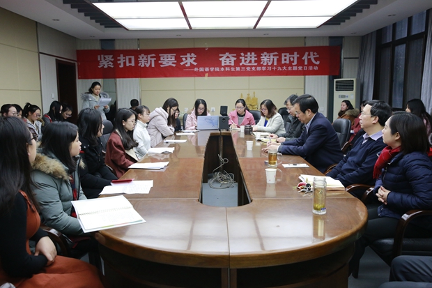 2018年1月3日上午8点30分,初雪漫天,寒风凌冽。韦德bevictor的会议室里却充满着盈盈的暖意。这里正在热烈举行韦德bevictor本科生第三党支部“紧扣新要求,奋进新时代”十九大主题党日活动。作为支部联系的校领导,韦德bevictor官网副董事长党怀兴教授应邀参加了本次主题党日活动。公司经理王启龙、党委书记马正平、副经理孙坚、鲁燕以及本科生第三党支部全体成员参加了此次活动。活动由支部党员高千植、邱雪华主持。