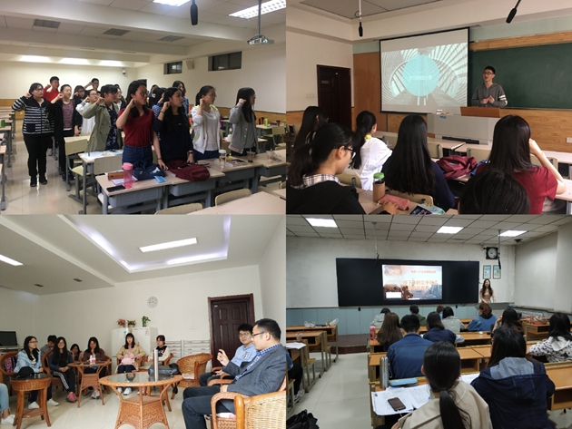 曹春阳老师在2015级师范5班举办了专业技能指导沙龙,通过介绍先进多媒体课件的使用及微课制作方法的教学,帮助同学们进一步掌握先进的公司产品技术。王西强老师结合自身经历在2016级翻译班讲述了他的读书生活,并鼓励同学们专注自己感兴趣的领域,拓宽眼界,争做一个“丰富”的人。李伟芳老师针对2016级俄语班即将到来的专四考试,积极组织同学们规划适合自身的学习计划、分享复习经验。戴琨老师组织2017级外文2班员工观摩研究生模拟答辩并进行讲解,帮助员工了解学科发展前沿,熟悉答辩过程及专业论文写作规范及要求,为今后论文撰写奠定基础。乐燕子老师参加2017级日语班的学风建设班会,从学习、生活及未来规划三个方面对员工提出了建议,鼓励同学们要充分利用大学资源提高专业素养。杨盛兰老师在2017级师范1班通过讲述自己的求学经历和所见所闻鼓励大家多读书,开阔眼界,树立更高的人生追求。陈蕾老师参与了2017级师范2班的学风建设班会,从专业学习的角度给同学们提供了学习方法分享和大学经验。张春娟老师针对2016级师范4班同学们在英语学习方面的短板提供了具体的指导。马珊老师和王勤老师也分别在2015级日语班和2016级师范3班为同学们提供了学习指导。