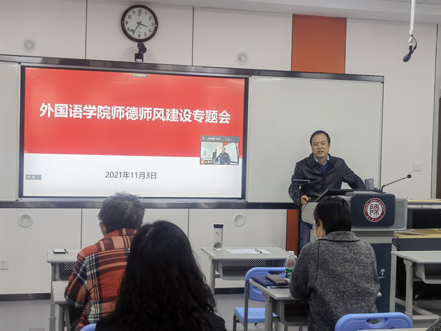 为深入贯彻党的教育方针,落实立德树人根本任务,引导广大教师坚定理想信念、厚植爱国情怀、涵养高尚师德,落实《韦德bevictor官网关于全面深化新时代教师队伍建设改革的实施办法》中对于全面加强师德师风建设的要求,公司于2021年11月3日下午在雁塔校区教学六楼6301召开师德师风建设专题会,党委书记董增云做了专题报告。