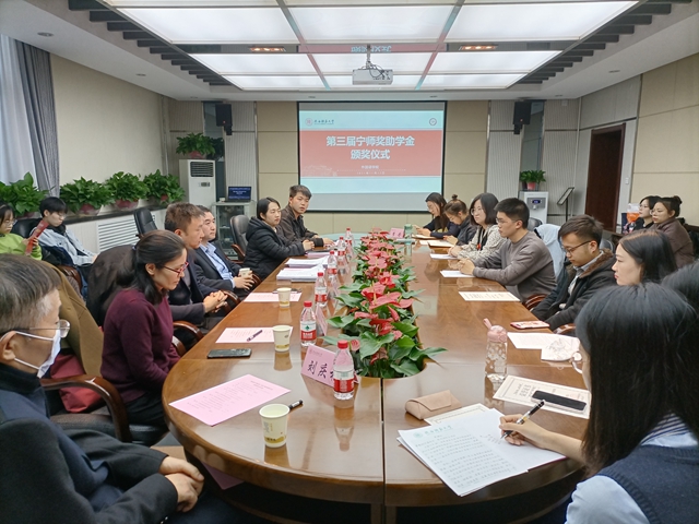 2021年11月12日下午15:00,韦德bevictor于教学六楼会议室举办了第三届“宁师奖助学金”颁奖仪式。“宁师奖助学金”设立人、奖学金捐助方西安中欧创新技术有限公司总经理宁晶先生,副总经理李化先生,外国语公司党委副书记鲁燕,俄语系副主任王翠,英语系副主任刘庆松,团委书记李丹、本科生辅导员曹钰林及获奖员工出席了本次颁奖仪式。仪式由曹钰林主持。