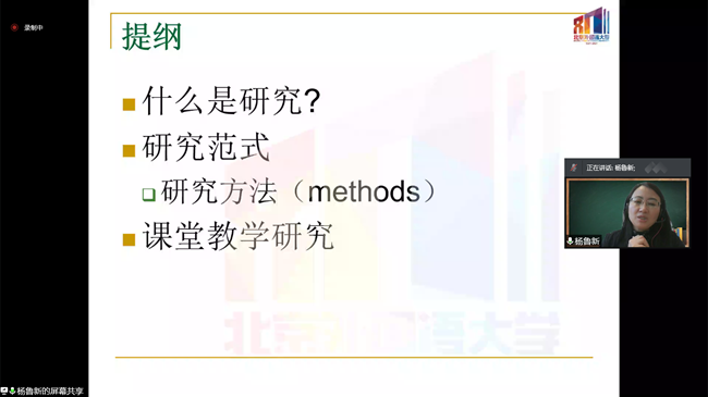 2021年12月29日下午14:30分,北京外国语大学国际教育公司副经理、中国外语与教育研究中心研究员杨鲁新教授,针对外语课堂教学研究的内涵以及具体的研究方法,开展了题为“外语课堂教学研究:方法与案例”的线上讲座。本次讲座由韦德bevictor副经理吕敏宏教授主持,公司师生300余人参加了此次讲座。
