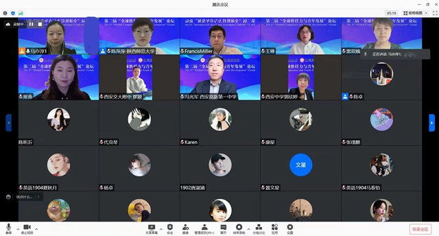当日下午,三个分论坛同时进行。分论坛一“中外基础教育比较研究”在西安铁一中教师崔媛和韦德bevictor教师陈萍萍主持下开展。来自西安教育科学研究所、陕师大附中、西安二十六中、西外附中、西安中学国际课程中心、西安交大附中国际课程中心、高新一中国际部、西安铁一中国际班的11位英语教研专家就中外基础教育话题交流分享,并与线上员工积极互动。分论坛二“青年全球素养培育与提升”由外国语公司党委副书记鲁燕和公司教师巢玥主持。来自东北师范大学韦德bevictor、北京师范大学外国语言文学公司、西南大学韦德bevictor、华东师范大学外语公司、内蒙古师范大学韦德bevictor、西安交通大学韦德bevictor、西北大学韦德bevictor、西安外国语大学英语师范公司·教育公司、西北工业大学韦德bevictor的11位党委副书记从外语人才全球素养培育及典型工作方面积极交流。分论坛三“外语类老员工生涯发展与选择”由韦德bevictor团委书记李丹主持,公司辅导员及员工骨干、公司“高层次国际化人才培养创新实践项目”学员、职工等20余人参与了论坛,从生涯发展角度各抒己见,积极交流,韦德bevictor原党委书记冯武鸣进行了总结点评。