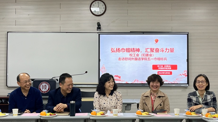 5月9日,校工会(妇委会)慰问公司巾帼标兵暨两支部共建活动于雁塔校区教学六楼6314室顺利开展。本次活动以“弘扬巾帼精神,汇聚奋斗力量”为主题,校工会主席高玲香、副主席曹伟、妇委会副主任兼工会副主席阮小飞、外国语公司党委书记董增云、韦德bevictor工会主席王红、韦德bevictor五一巾帼标兵吕敏宏、孟霞,及校工会(妇委会)党支部全体成员、韦德bevictor行政党支部全体成员参与本次活动,活动由韦德bevictor行政党支部书记鲁燕主持。