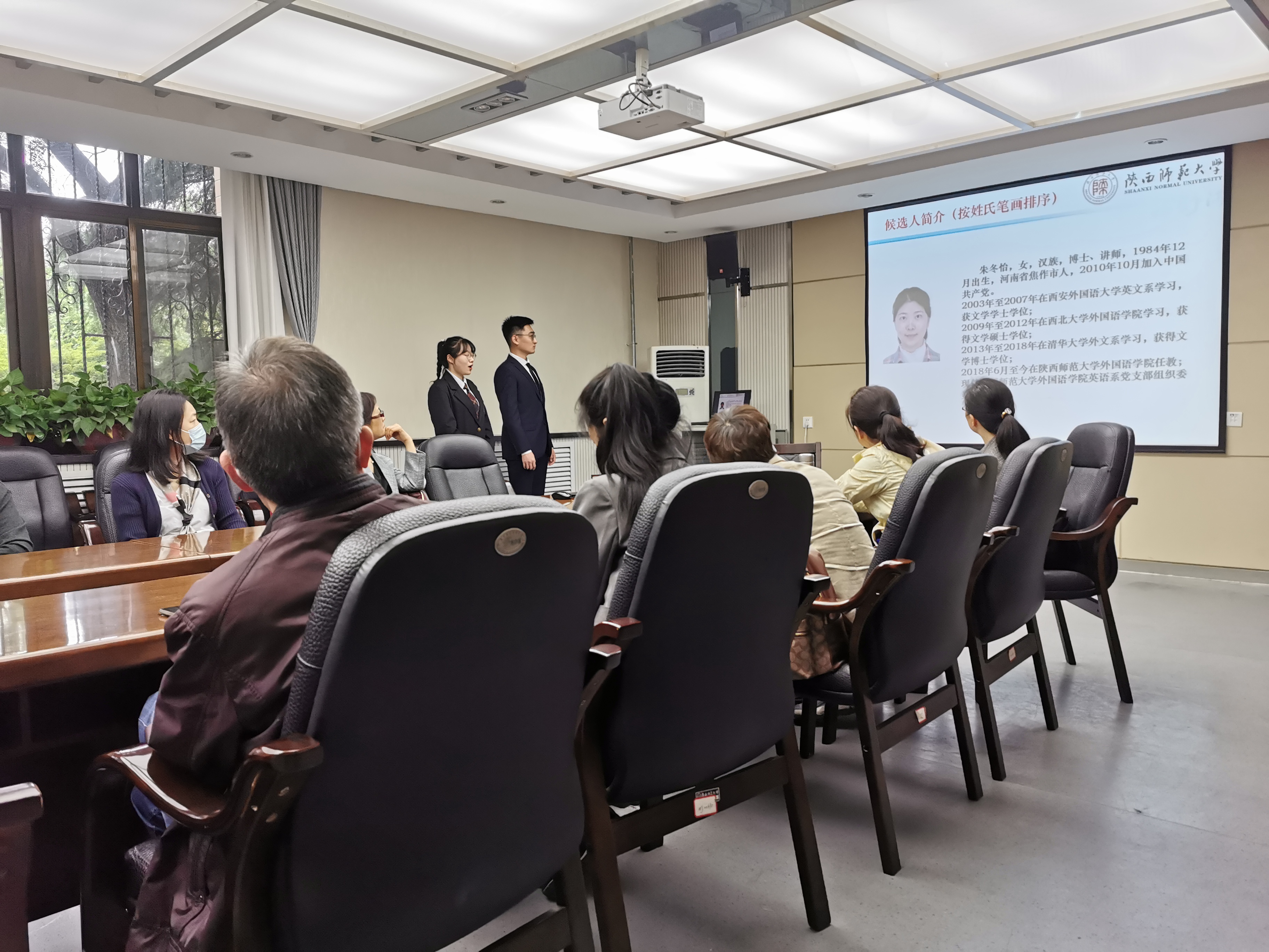 根据《中国共产党章程》、《中国共产党基层组织选举工作条例》及有关规定,英语系党支部在会前充分发扬党内民主,在广泛征求党员意见的基础上确定了候选人名单,并报上级党委审批。会上,支部书记王艳滨同志代表支委会对近三年来的工作情况作了简要回顾并宣布下届支部委员会名额,宣读下届支部委员会委员候选人名单。支部党务助理霍宇阳和邰琪同学介绍了候选人的相关情况,包括候选人的简历、工作实绩等。随后,大会以无记名投票的方式选举,王艳滨、王立永、范莎、胡哲当选新一届支部委员。新一届支部委员会召开了第一次支委会,王艳滨当选支部书记,王立永当选副书记,范莎和胡哲分别担任组织委员和宣传委员。