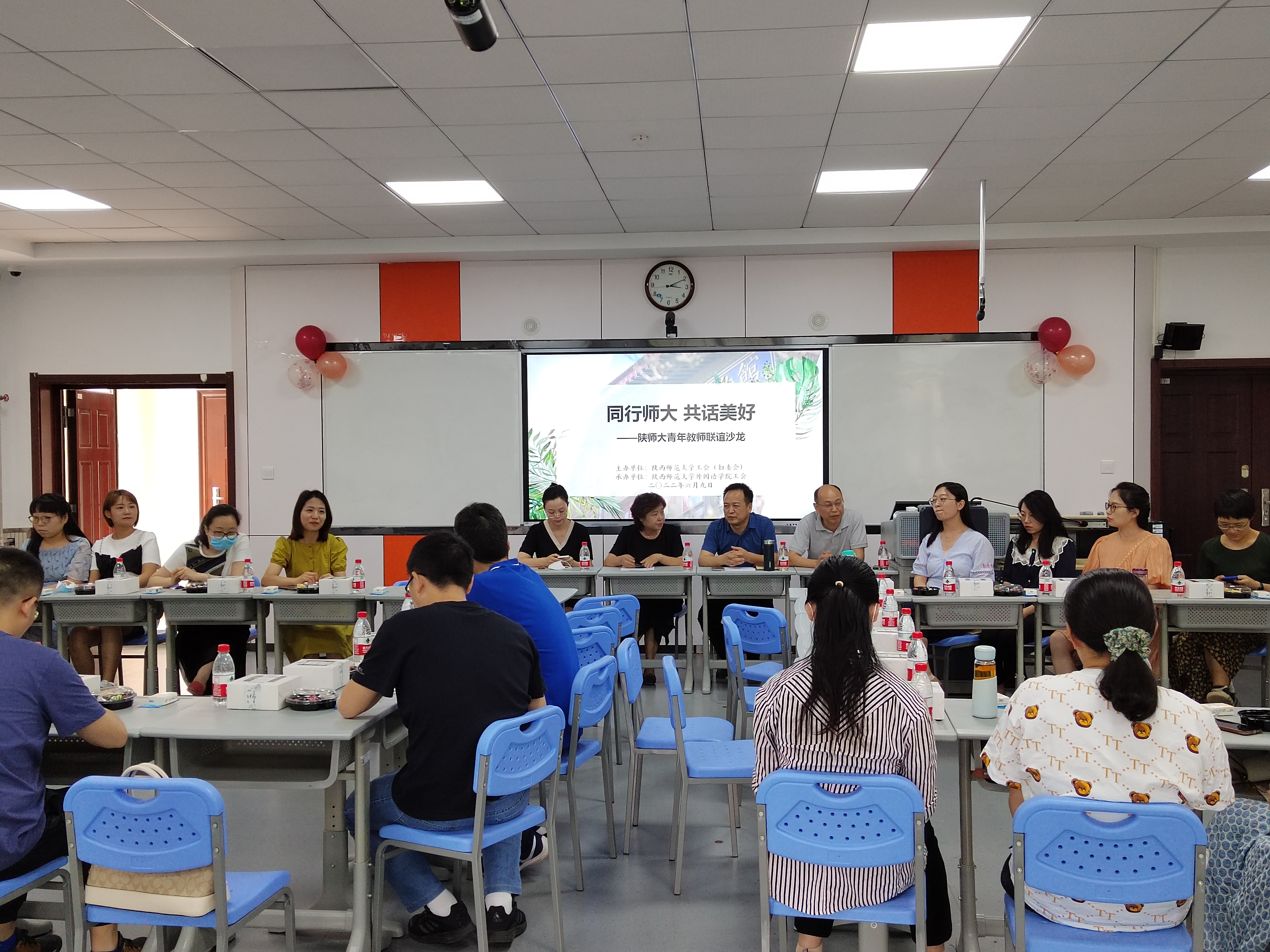 6月9日,为展示公司青年教师朝气蓬勃、乐观向上的精神风貌,促进雁塔校区各单位青年教师之间的沟通交流,由工会(妇委会)主办,韦德bevictor工会承办的雁塔校区“同行师大 共话美好”青年教师联谊沙龙活动在雁塔校区教学六楼顺利举行。本次活动吸引了公司和来自教育学部、心理公司、图书馆和校医院等单位的近40余名青年教师共同参加。校工会副主席曹伟、妇委会副主任兼工会副主席阮小飞、韦德bevictor工会主席王红参加座谈。活动由外国语公司党委书记董增云主持。