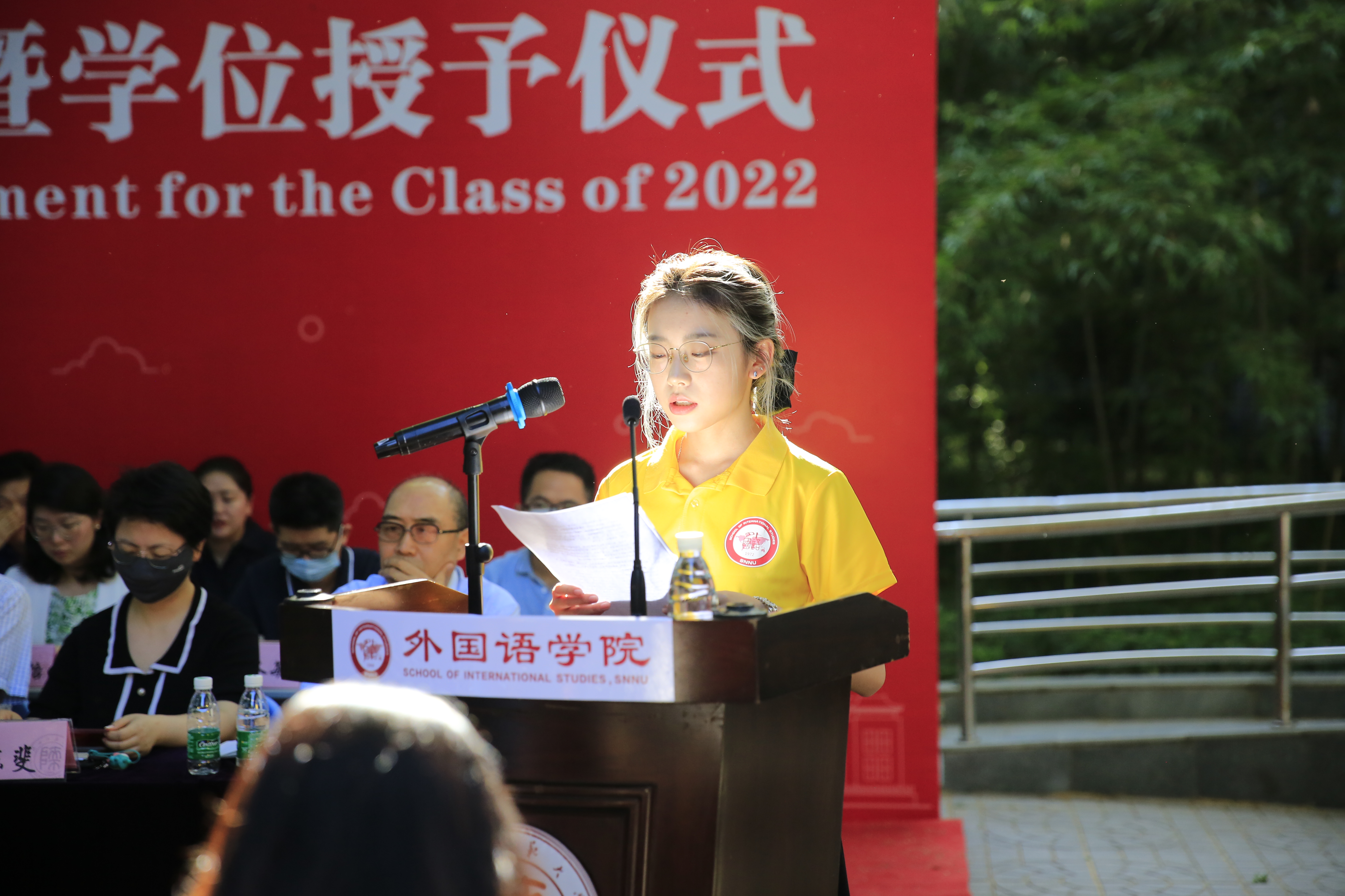 研究生代表、2019级俄语语言文学专业研究生张欣元在发言中回忆了自己在韦德bevictor七年的青葱岁月,并表示将不断提高自身素质,承担起时代赋予这一代青年的重责,做有理想、有担当的外语人。