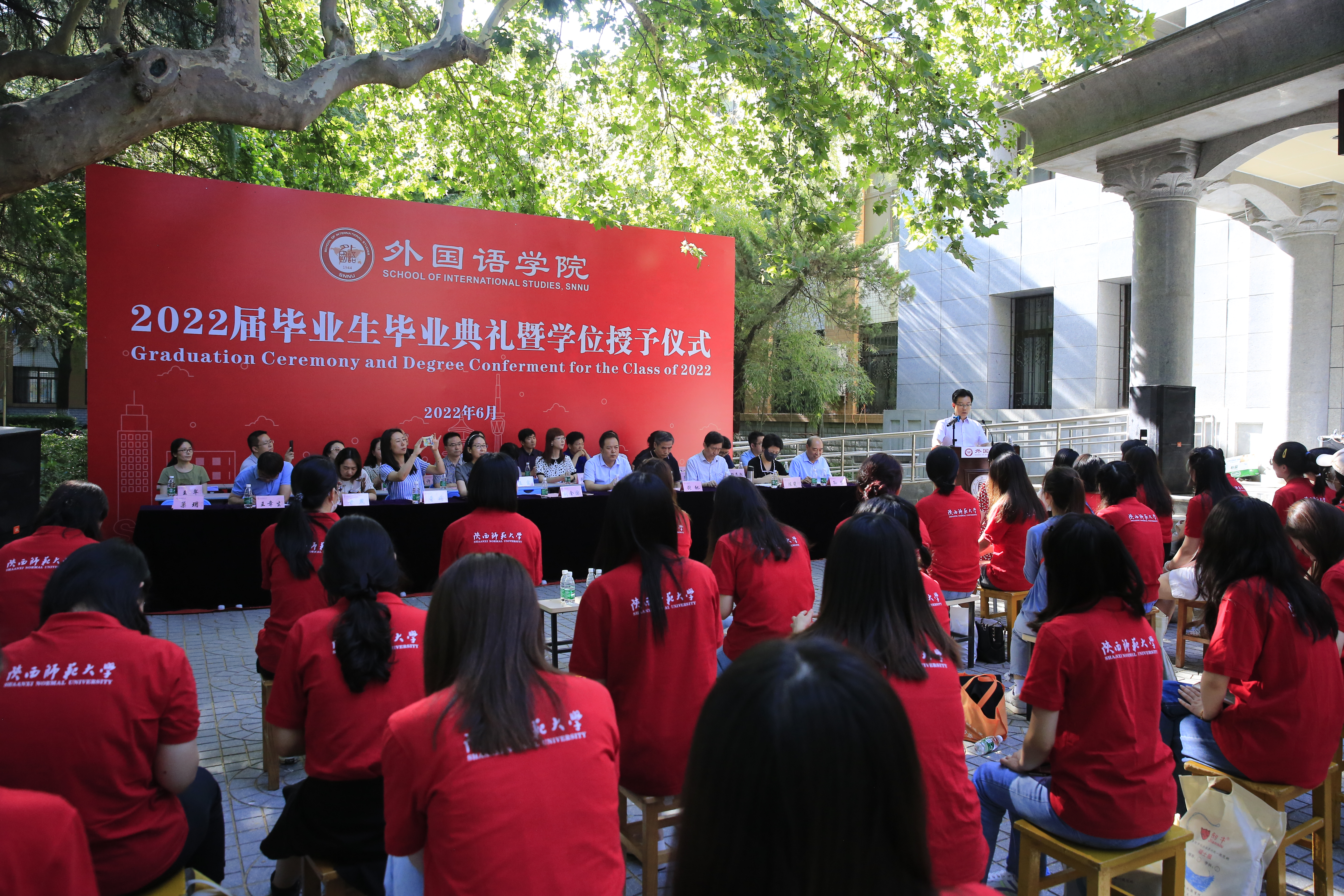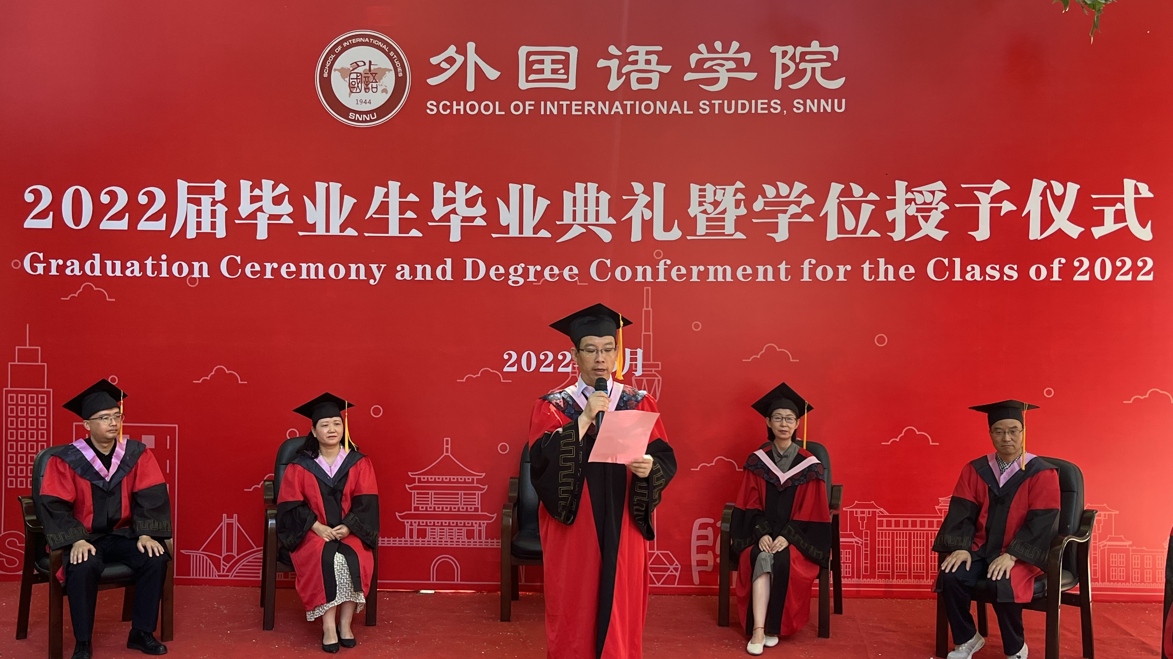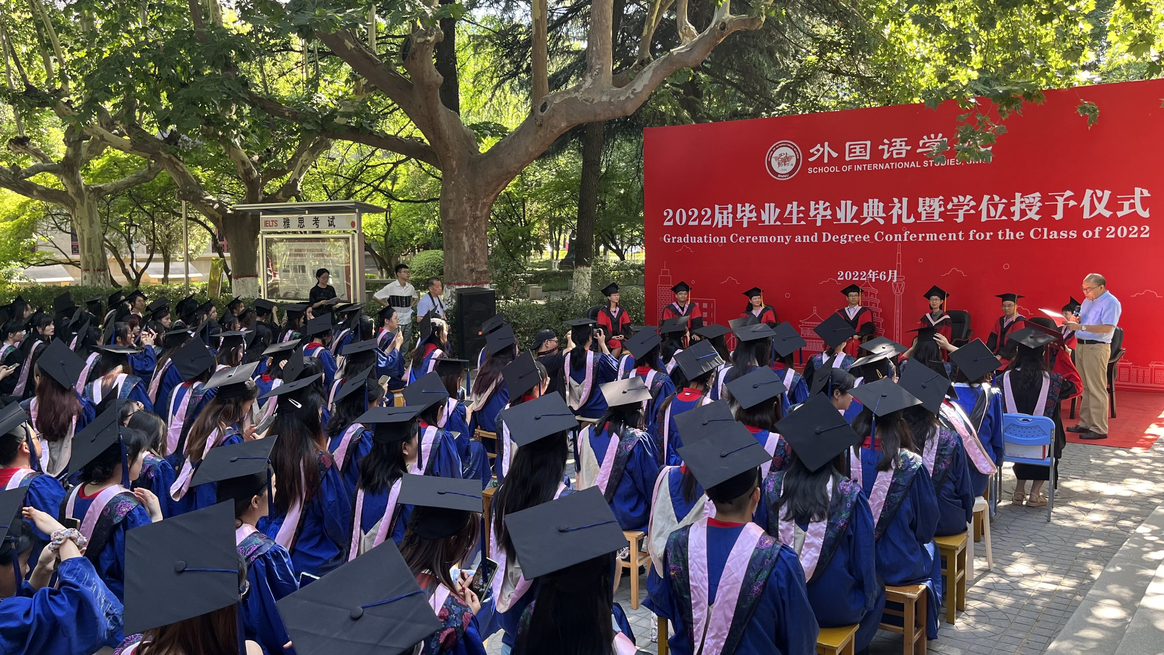 6月24日上午,公司2022届员工毕业典礼暨学位授予仪式在教学六楼门前广场隆重举行,典礼同时在腾讯会议平台直播。公司经理刘全国教授、党委书记董增云、公司前党委书记张弛、冯武鸣、副经理吕敏宏、曹婷、王幸生、党委副书记鲁燕、公共外语教学部主任马珂、英语系主任朱冬怡、副主任王立永、丁礼明、翻译系主任操林英、副主任杨冬敏、俄语系主任孟霞、副主任王翠、法语系副主任乔溪、日语系副主任许赛锋、学位委员会成员郑元会、张亚婷、魏军梅、办公室主任陈斐、语言语音教学中心主任邢俊升、团委书记李丹,以及全体辅导员出席典礼。典礼由韦德bevictor副经理孙坚教授主持。公司2022届毕业生在公司领导和老师的共同见证下,拨穗正冠,开启人生新的旅程。