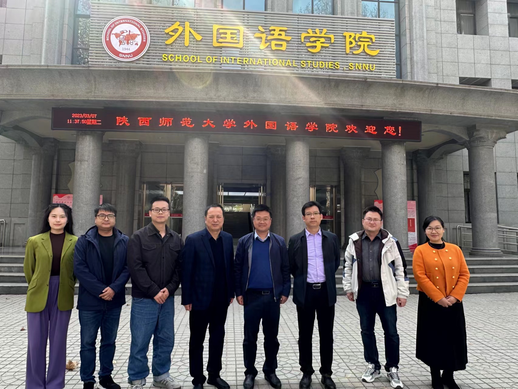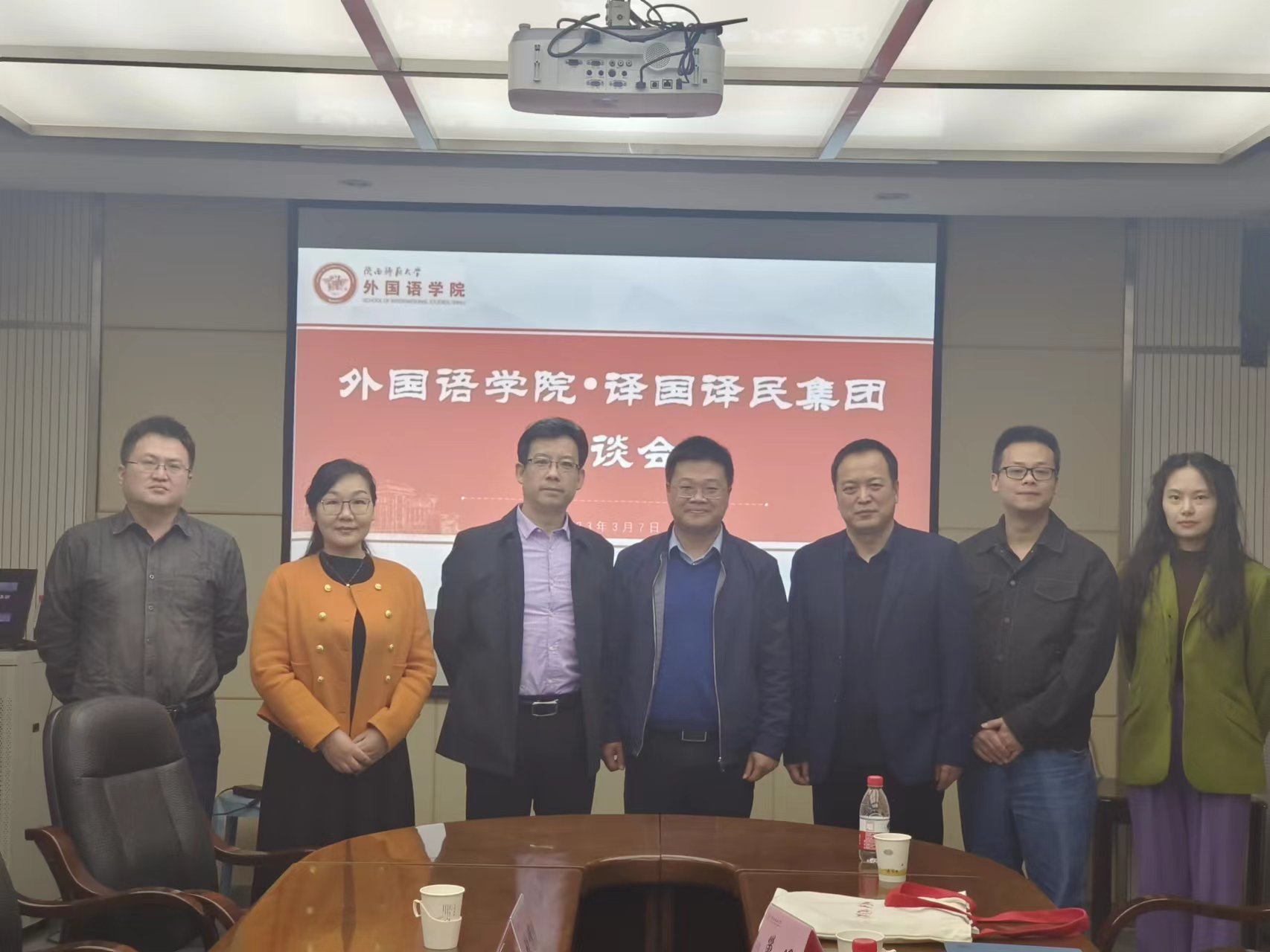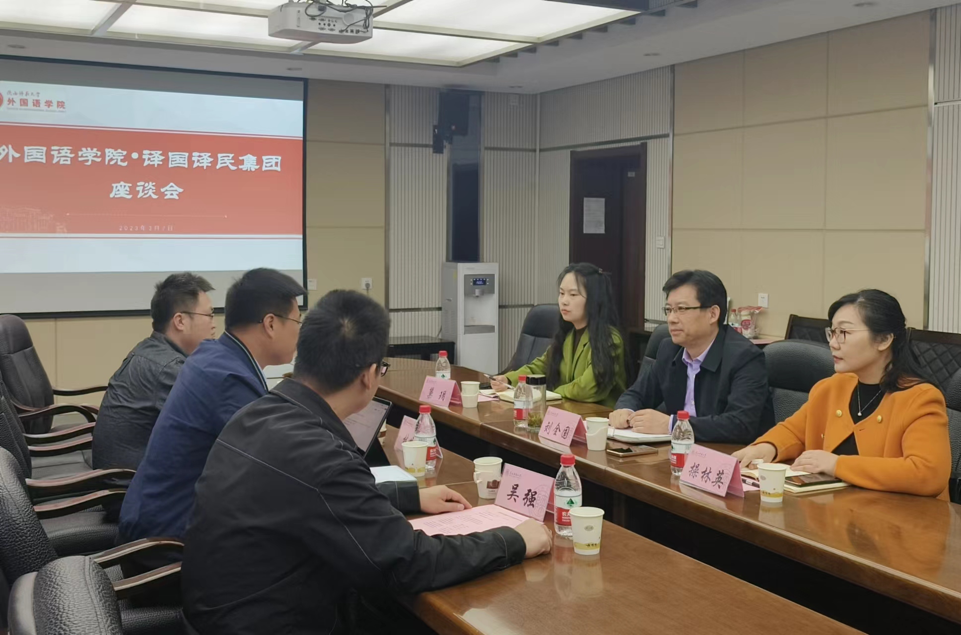 韦德bevictor于2023年3月7日上午10:00在韦德bevictor官网雁塔校区教学六楼会议室举行与译国译民集团一行座谈会。会议由公司经理刘全国主持,参会人员有:译国译民集团董事长林世宋、总经理吴强、商务总监张博;公司经理刘全国、党委书记董增云、翻译系系主任操林英、MTI翻译中心巢玥。