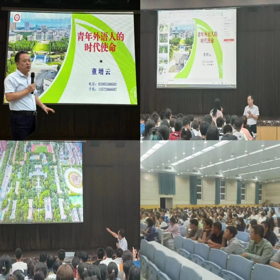 9月22日晚,公司党委书记董增云为2023级本科新生做题为“青年外语人的时代使命”的报告。