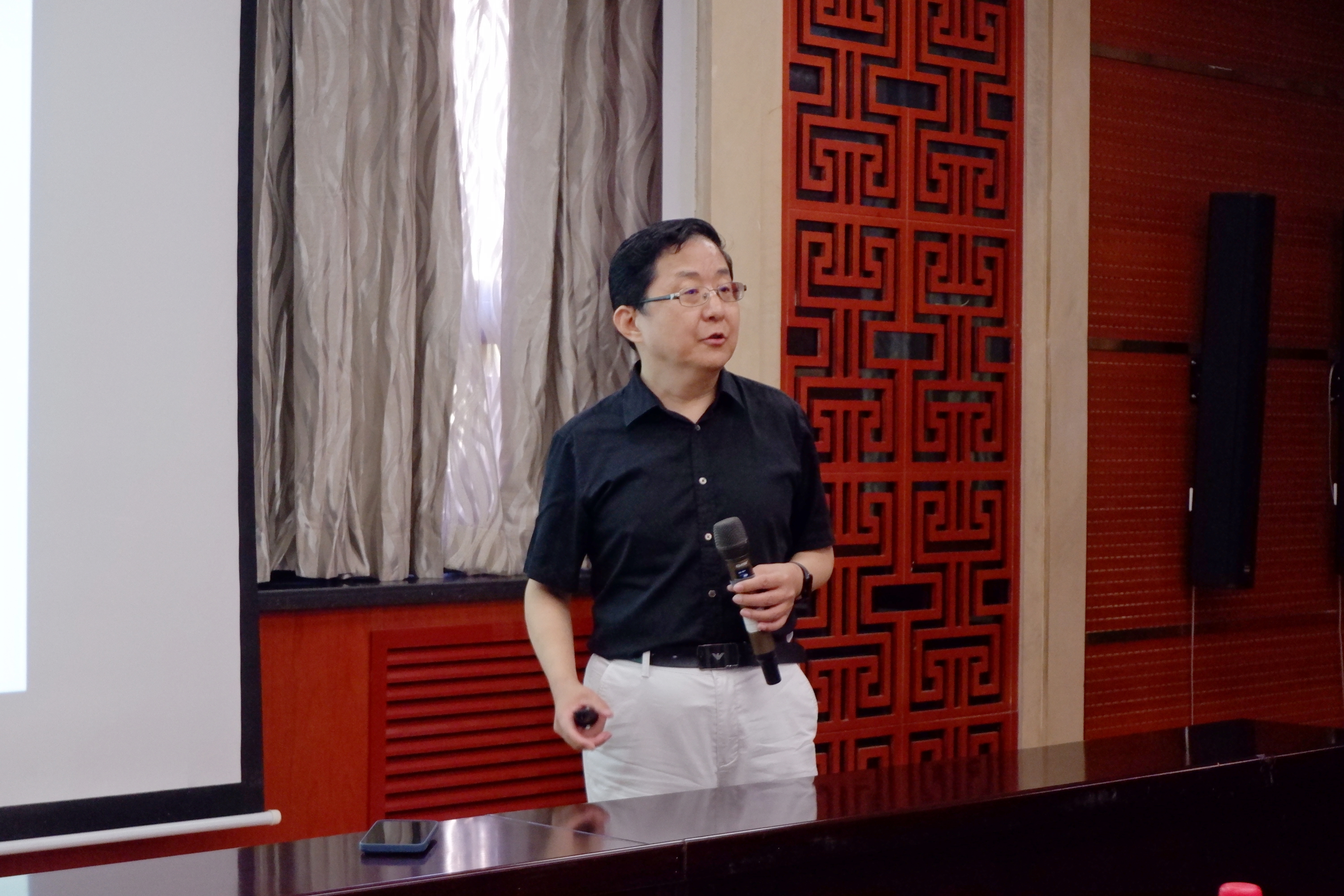 北京语言大学吕世生教授以《葛浩文中国文学翻译的两个共识:以莫言〈蛙〉英译本为例》为题进行报告。吕世生教授分别从葛浩文翻译的“连译代改”、替代理论模式、葛浩文中国文学翻译特征、文化障碍——中西“罪感文化”差异以及错位阐释——《蛙》英译本的文化错位五个方面做了报告。他借助解构主义“生命欲望”及“欲望实现”的文本关系来解释葛浩文的翻译活动,并以诺贝尔奖得主莫言《蛙》的英译实例阐释中西文化观念差异对译者的制约,指出文化差异是译文偏离原文的客观存在,超越了译者的翻译理念。他在报告中阐明应当如何认识并解释文本对原文的偏离,并赋予其偏离以合理性。