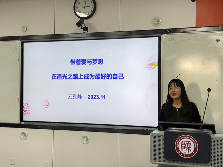 云雅峰分享了她个人在教师路上的成长经验,并介绍了她通过爱和梦想不断追求进步的动力。她详细讲解了教师个人专业化发展的方法:要做好发展规划、要坚持阅读、要勤于写作、要终身学习、要远离安逸、要有教育情怀等。