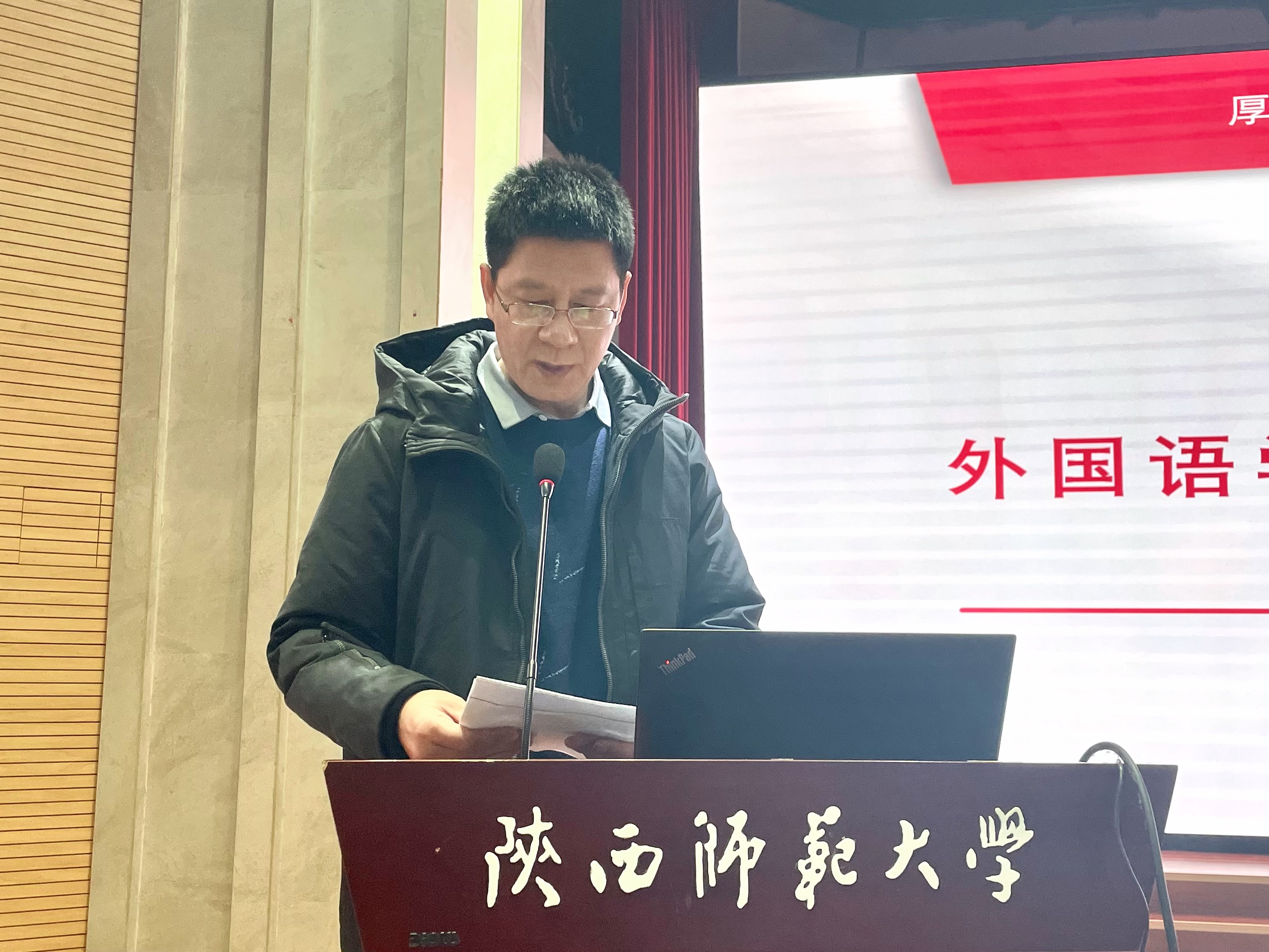 外国语公司党委书记董增云强调了“为党育人,为国育才”的伟大使命,向各位教师宣讲了《新时代高校教师职业行为十项准则》。他指出,要坚持立德树人的办学理念,不断完善研究生思想政治工作体系,充分发挥研究生导师的育人作用,进一步强化研究生思想和价值引领,牢牢把握研究生教育正确方向。