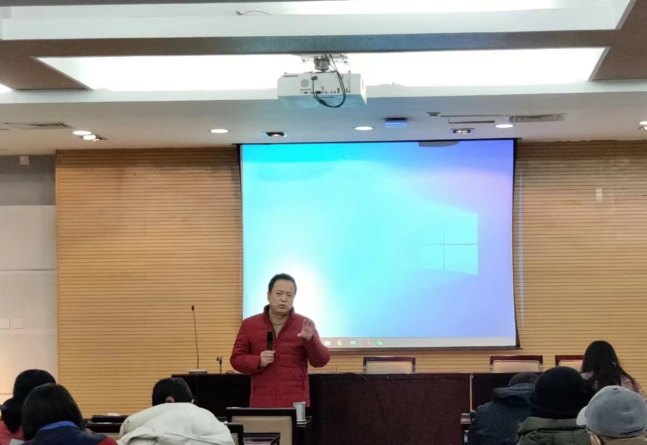 教师代表郭英杰副教授分享了自己的科研心得,以认识自己、知己知彼为出发点,提出要向优秀看齐、向优秀学习,并以公司李艳教授、王艳滨副教授和申慧洋博士为例,指出科研需要经历长时间的刻苦钻研,并且需要具备“愚公移山”的精神。
