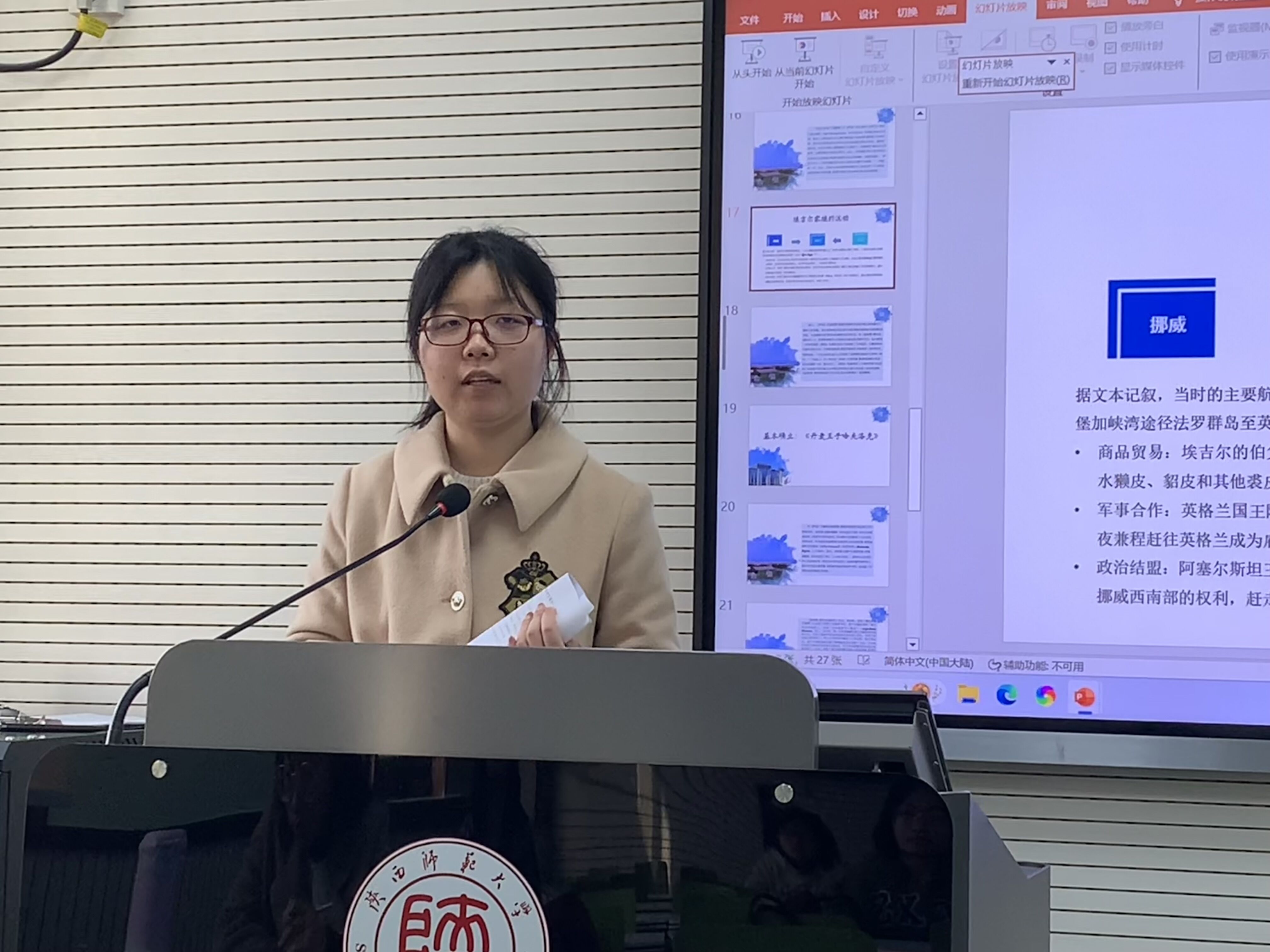 王梦鸽博士以“从史诗到传奇:盎格鲁-斯堪的纳维亚文化圈的发展”为题,深入浅出地探讨了盎格鲁-撒克逊人作为同族同胞、政治盟友和殖民对象,与斯堪的纳维亚人历经统一、分裂和融合的关系演变过程,并对其学术研究思路作出总结,即从斯堪的纳维亚的历史切入,研究不同时期文学文本中体现的盎格鲁和斯堪的纳维亚两个民族、文化相互融合的过程。