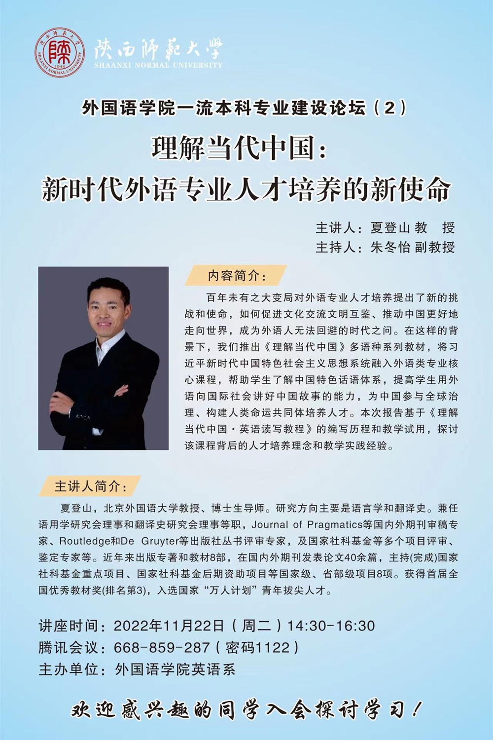 韦德bevictor一流本科专业建设论坛(2)--夏登山 教授