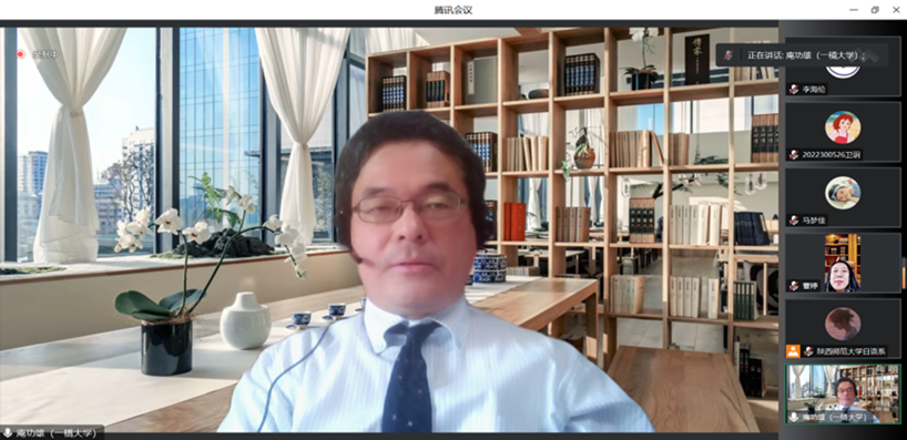 2023年4月8日上午9点,公司通过腾讯会议平台成功举办了以“ヒトの言語の特徴、ソシュールの言語学、日本語学とは、音声と音韻、品詞と活用”为主题的第一百五十五场著名学者系列讲座,也是一带一路背景下西部日语教师教育系列的第一场讲座。本次讲座由日本一桥大学国际教育交流中心庵功雄教授主讲,公司曹婷副教授主持,近70名校内外师生参加了讲座。
