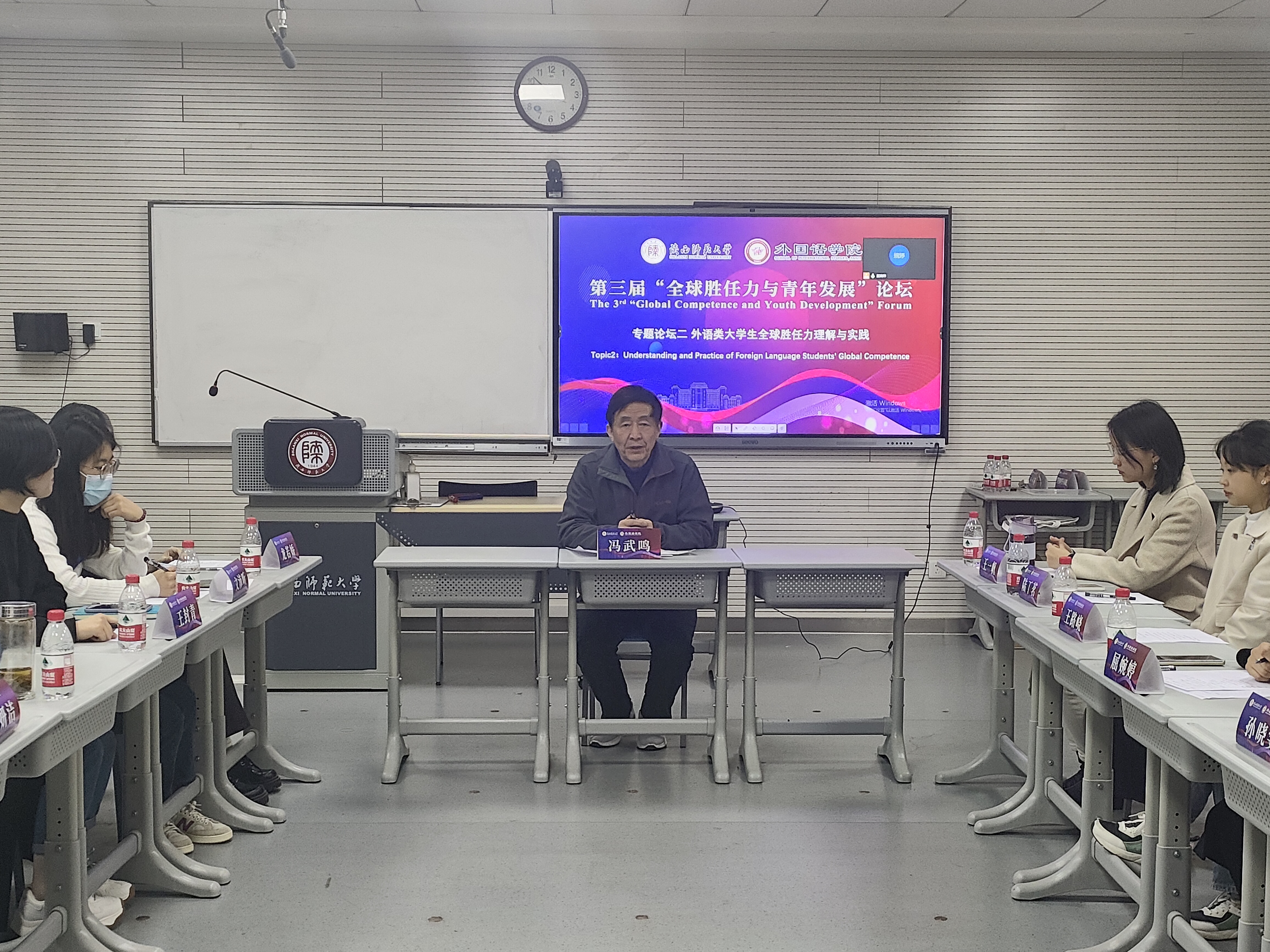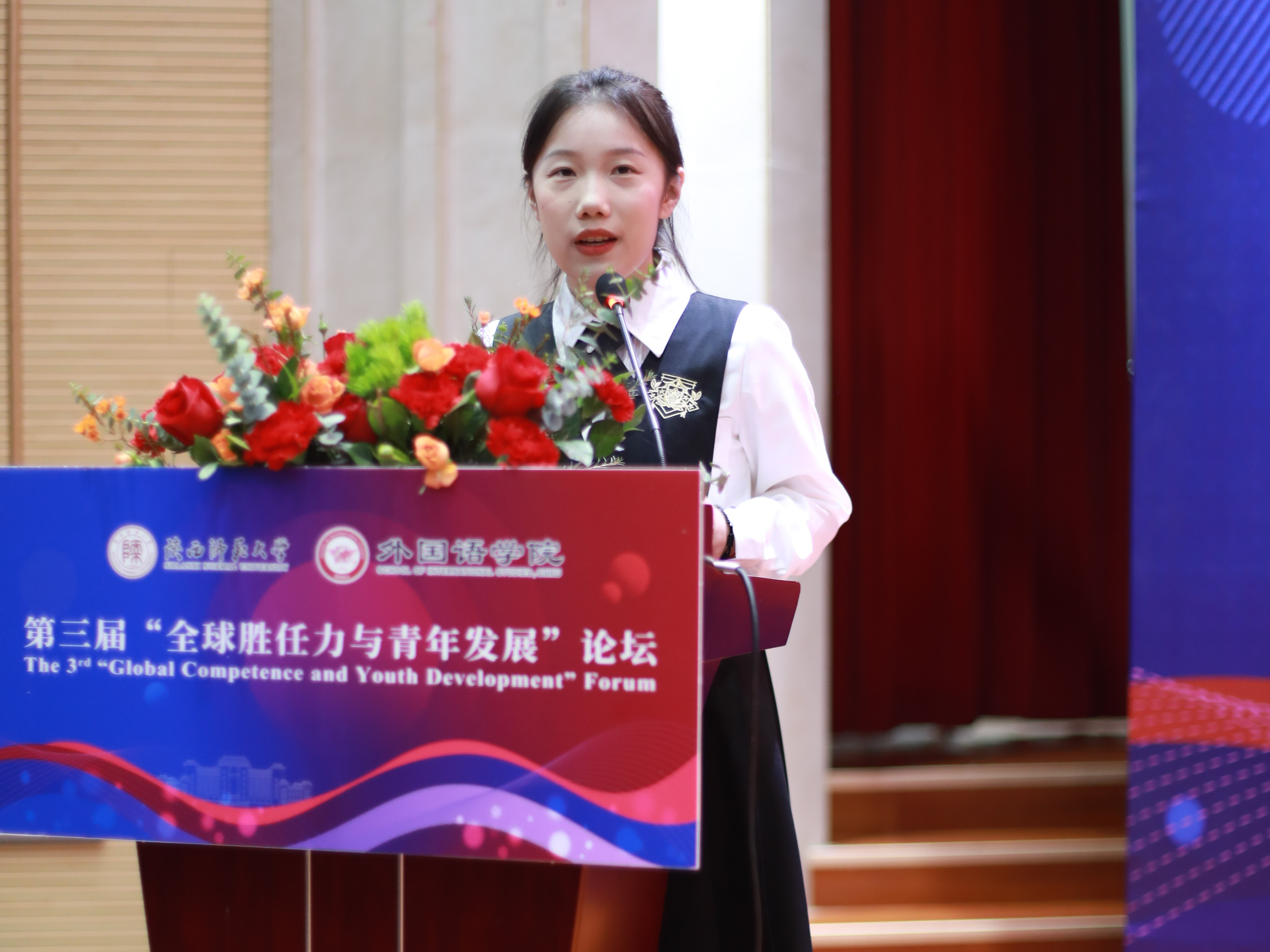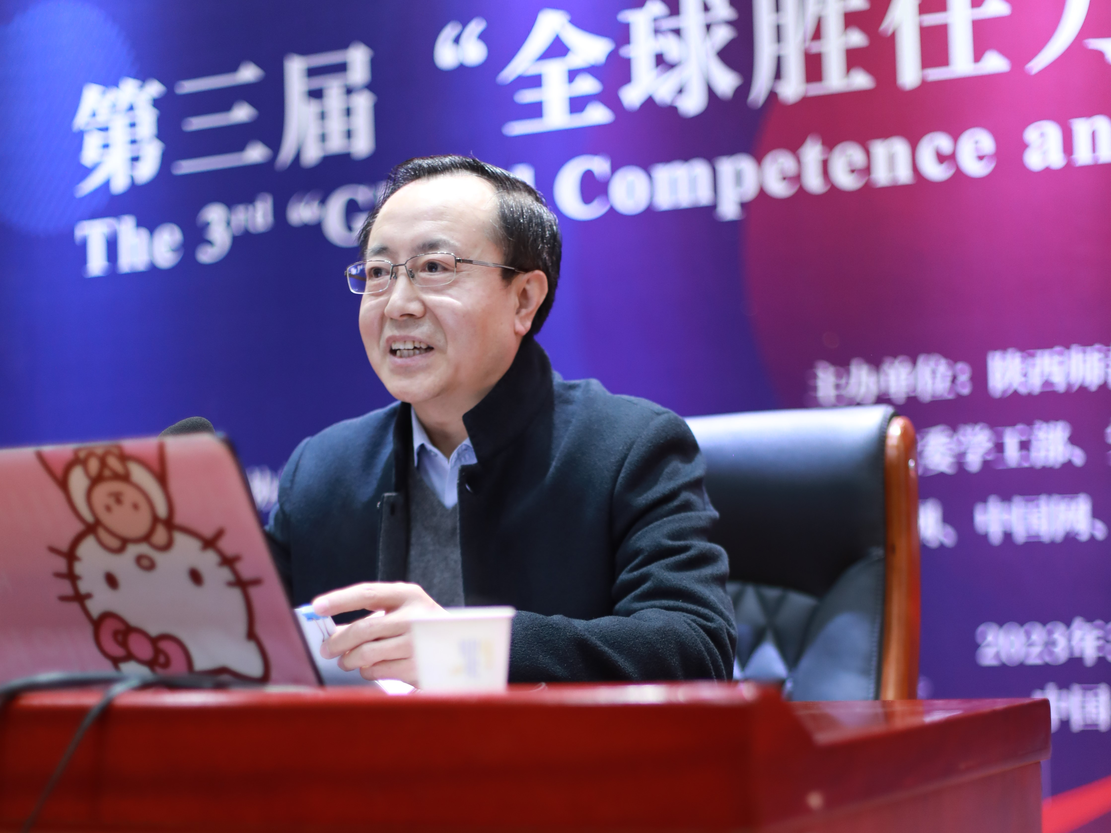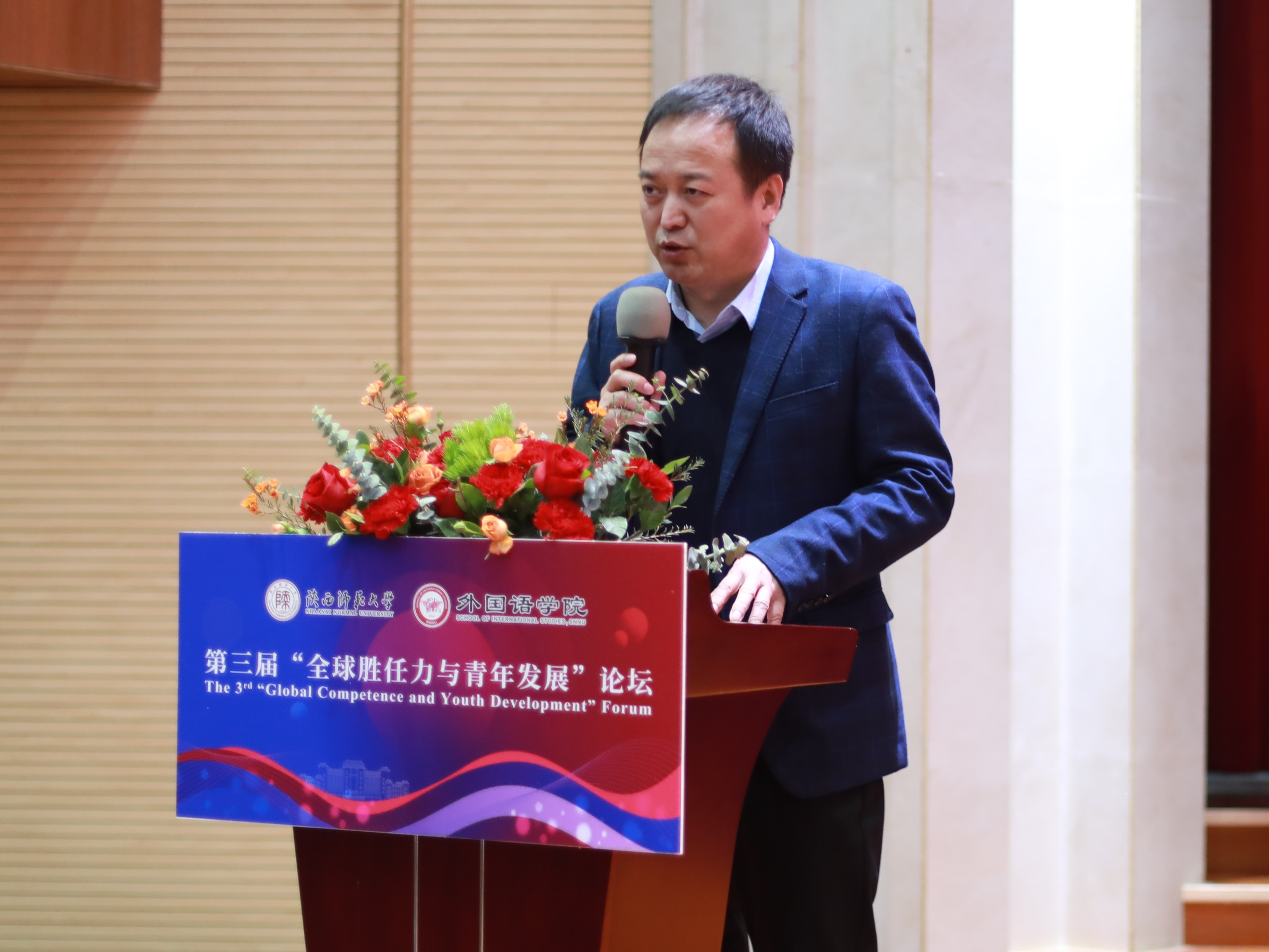 主旨报告阶段,来自不同专业领域的三名专家分别作了主题分享。西安外国语大学副董事长赵国华以“坚定‘四个自信’,助力民族复兴”为题,结合自身在英国大使馆以及丰富的外交和教育外事工作经历,从政治、经济、社会、政府治理与民生、国际关系五个方面介绍了中国之治与西方文化的对比,并对外语青年学子提出了希冀,鼓励大家要树立正确三观,坚定理想信念,把爱国之情、强国之志、报国之行融入民族振兴的伟业中。韦德bevictor官网教育学部教授刘骥以“教育的时代特征与时间张力:全球胜任力的视角”为题,通过剖析当代国际组织对“全球胜任力”的认识和探索,提出“教育如何应对新挑战”已经成为不可回避的时代之问,他强调教育的时代性发展源于教育的时间性智慧积累。秦创原(国际)路演中心董事长张国宁以“全球胜任力与青年韧性”为主题,通过国际社会中一系列生动的事例,说明了AI技术大跃迁背景下韧性培养与青年发展之间的关系,指出韧性是成功之源,生存之本,鼓励当代青年要善于穿透“迷雾”,奔赴繁星。
