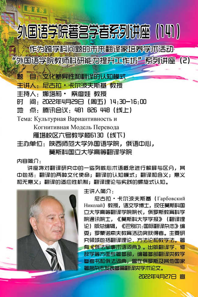 韦德bevictor著名学者系列讲座(141)预告