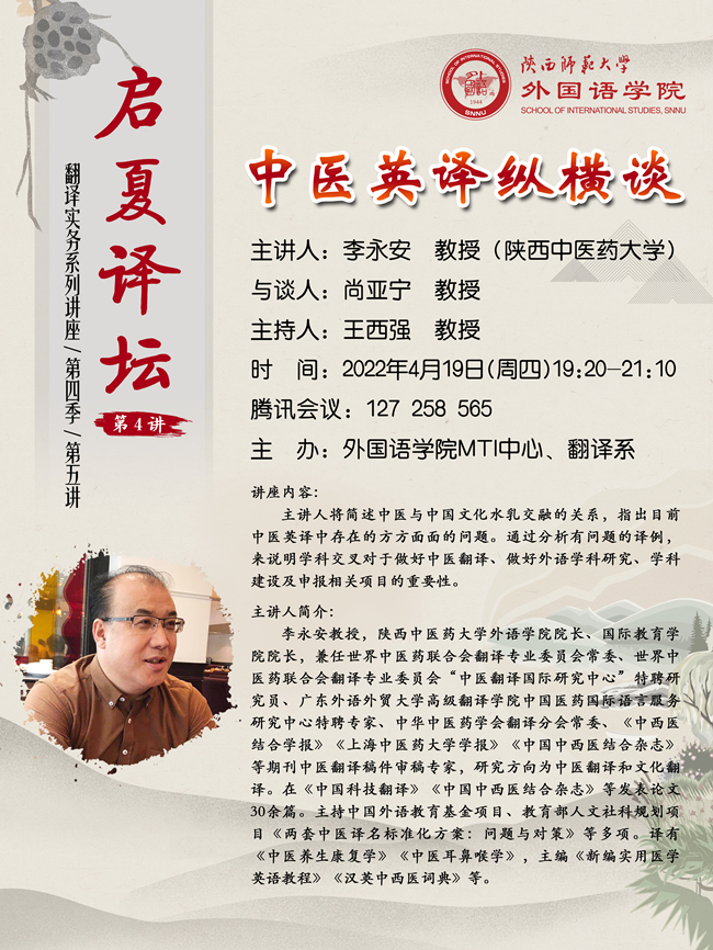 “启夏译坛”第4讲暨“翻译实务系列讲座”第四季第五讲预告